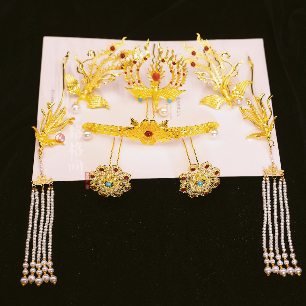 📚 格格间原创【松石】金色明制复原款发冠头面荻髻宝石镶嵌头饰发饰