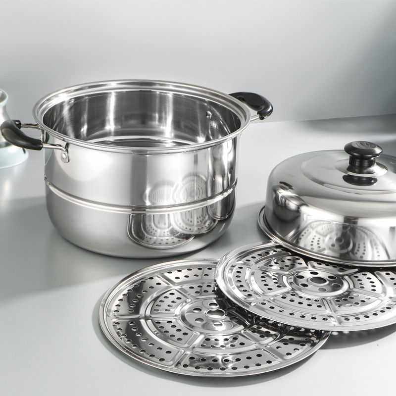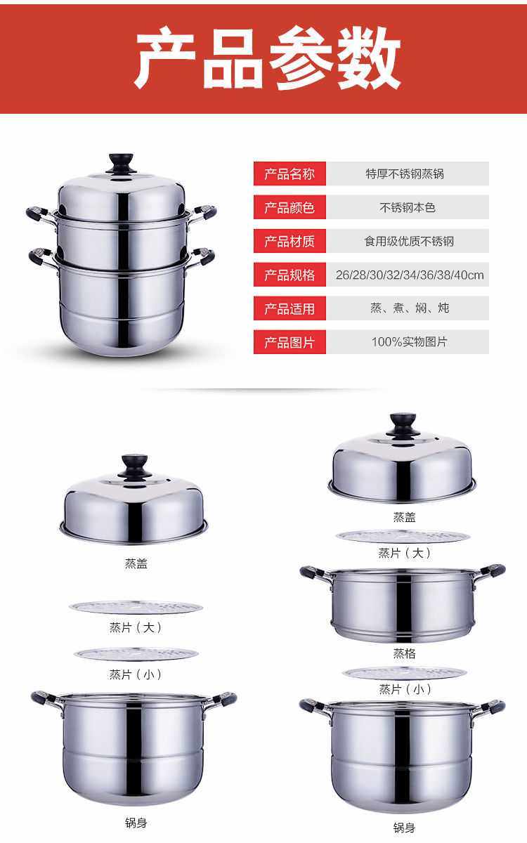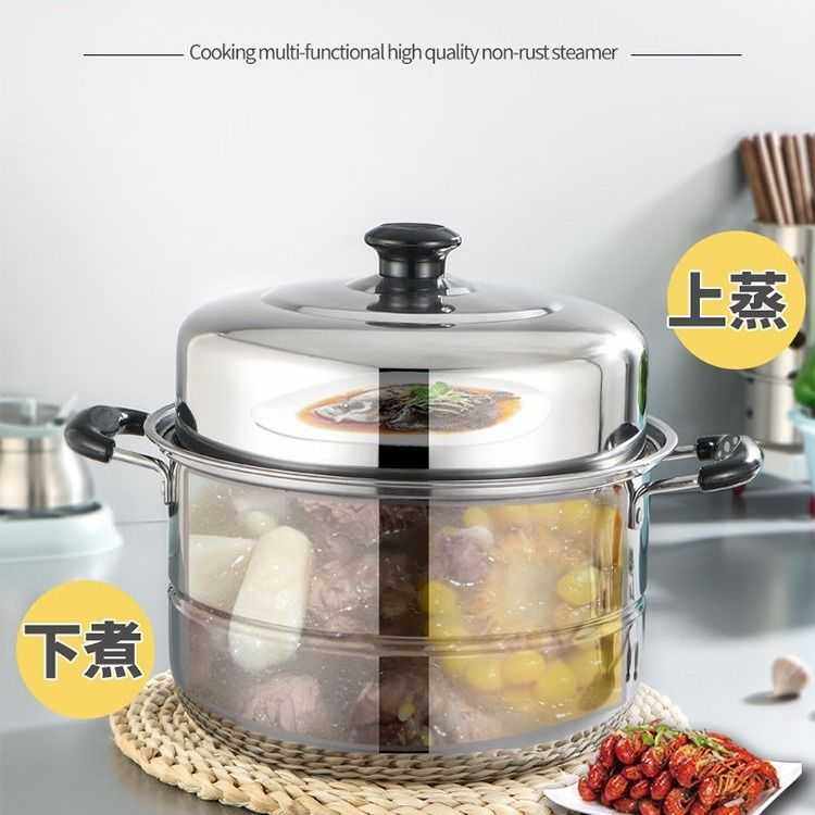 📚 伊特雅有磁蒸锅加厚特厚不锈钢锅36cm两层三层电磁炉燃气灶通用锅