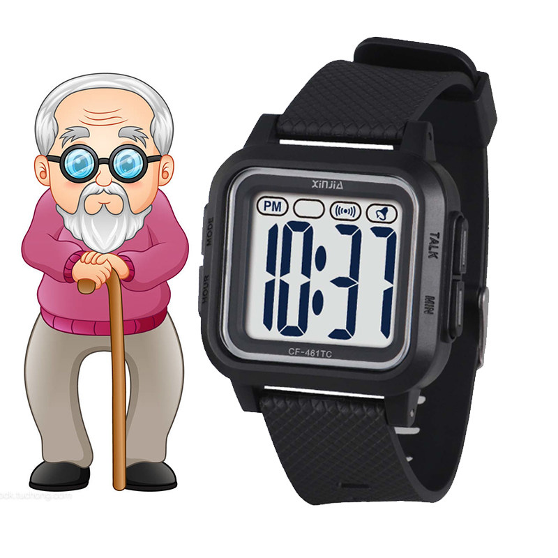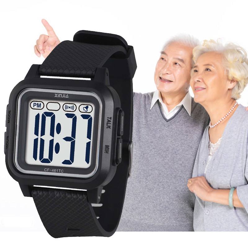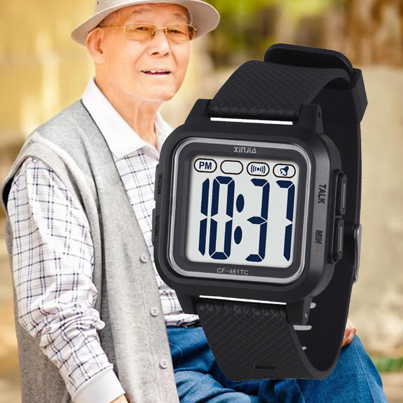 📚 大屏一键真人语音报时报日期手表中老人专用电子表盲人整点报时表