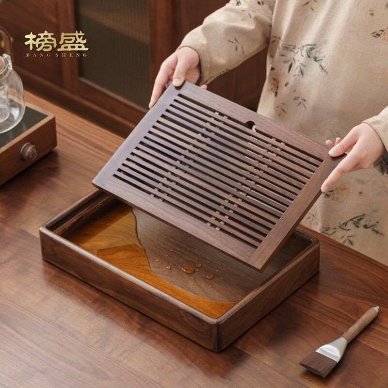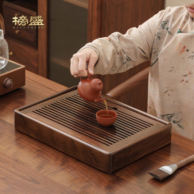 📚 榜盛胡桃木实木茶盘家用办公室功夫茶具茶台茶托盘高档储水干泡台