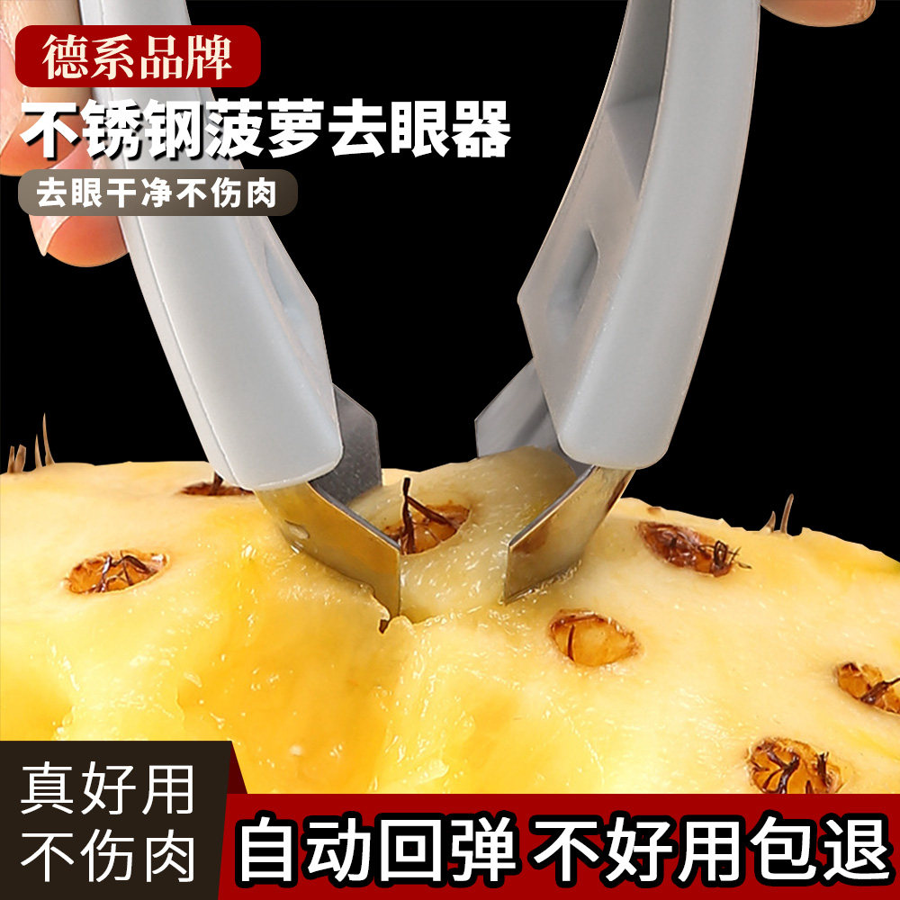 📚 菠萝刀挖眼器去眼专用夹子不锈钢凤梨工具家用去蒂神器挖孔挖籽夹