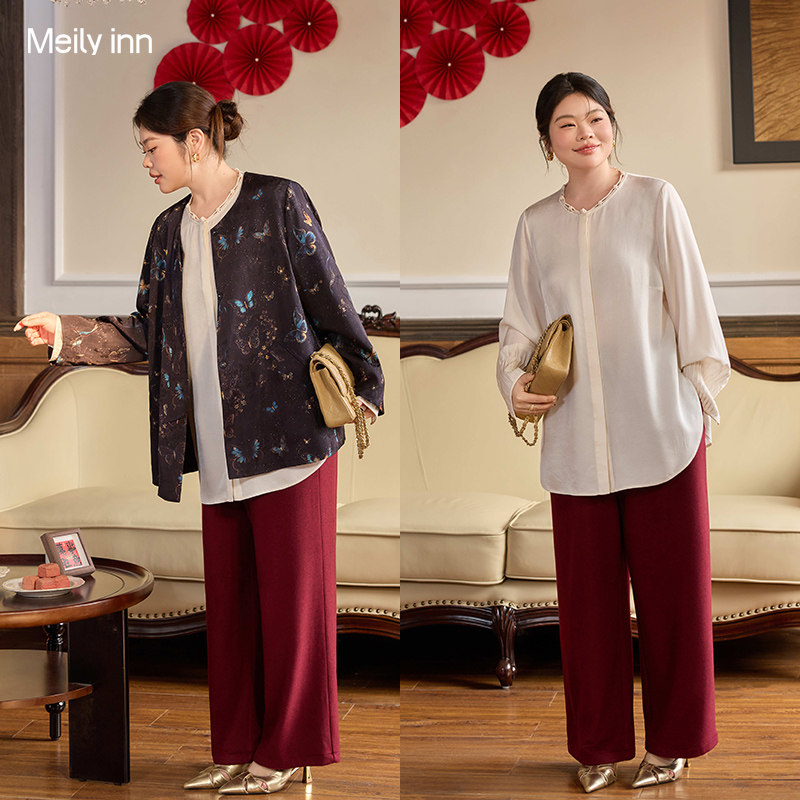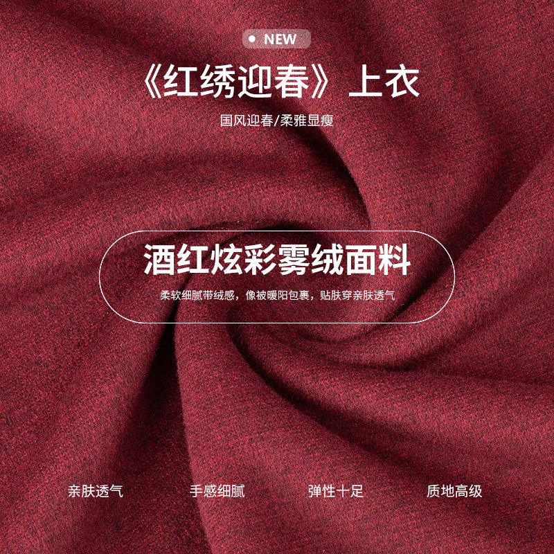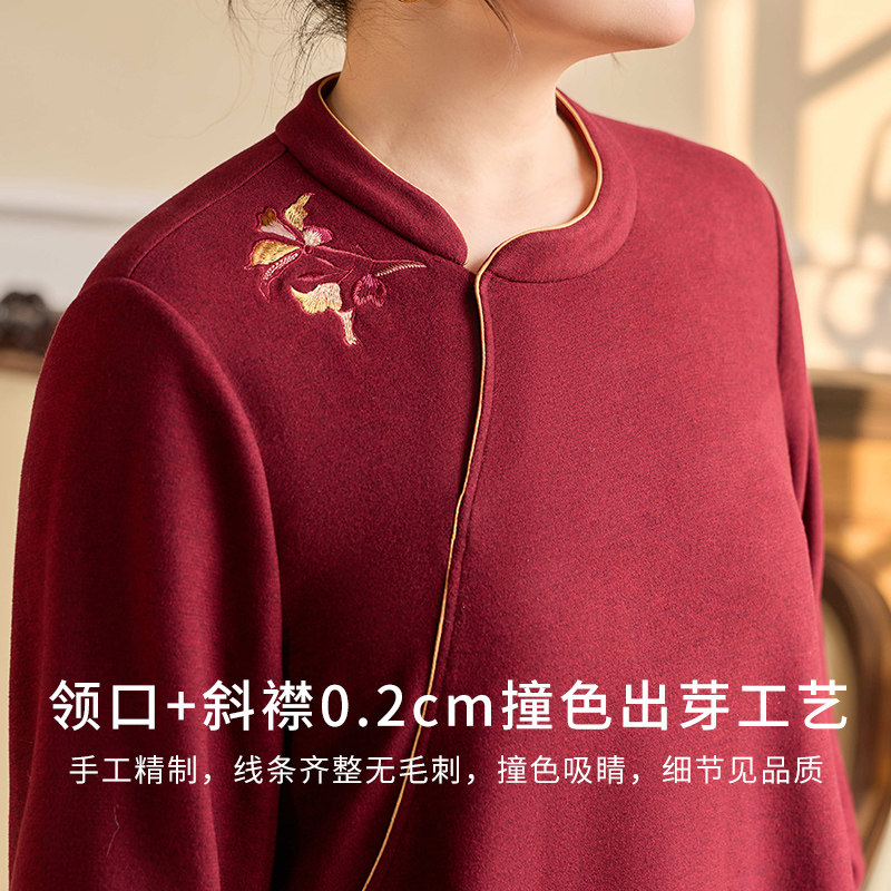📚 美丽客栈高端大码女装胖mm时髦高级感本命年洋气酒红色加绒上衣女