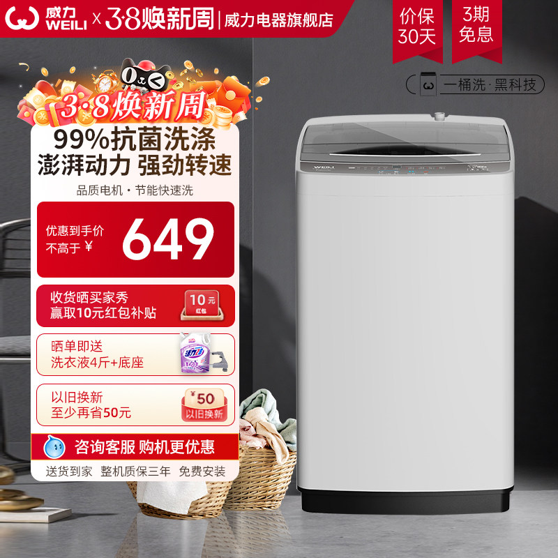 49¥ HU287 VeM7UwebayQ¥ https://m.tb.cn/h.i3LS1Ae 威力10kg公斤波轮洗衣机全自动家用公寓大容量筒自洁XQB100-2399 --------------------- 【原售价】1,099元 【现售价】999元。