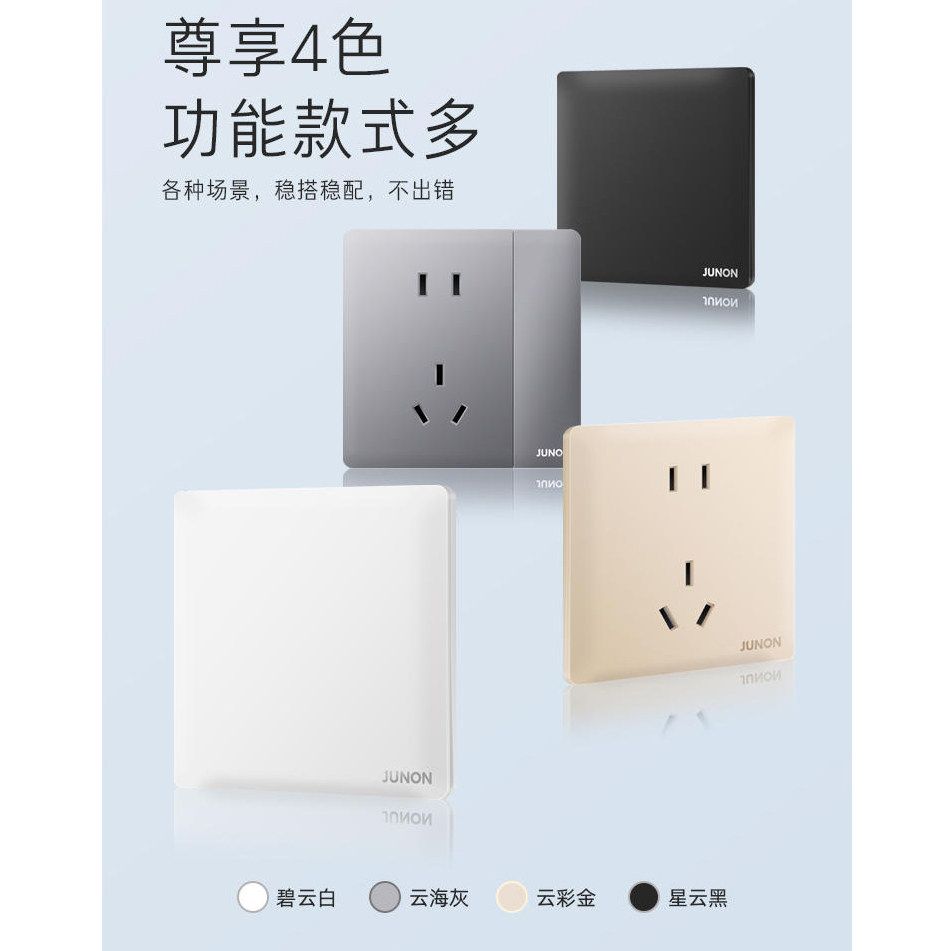 📚 俊朗开关插座正品 官网天云系列星云黑插座多孔开关面板家用套餐