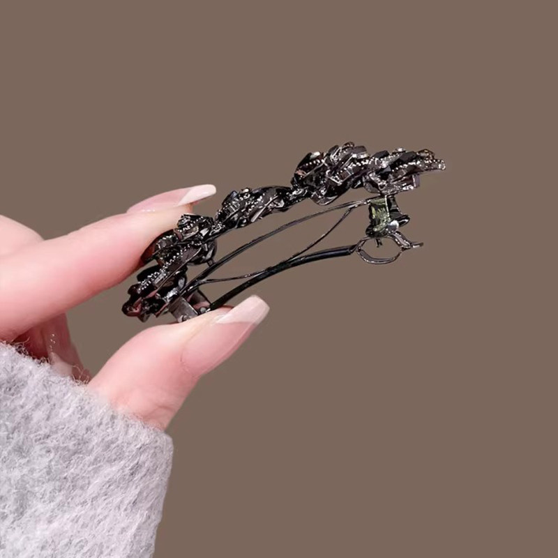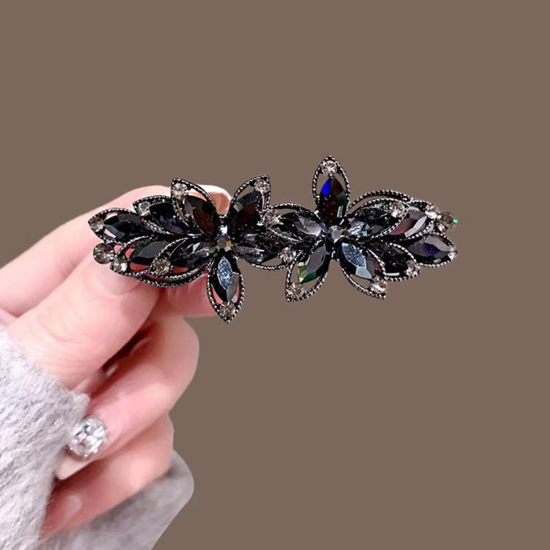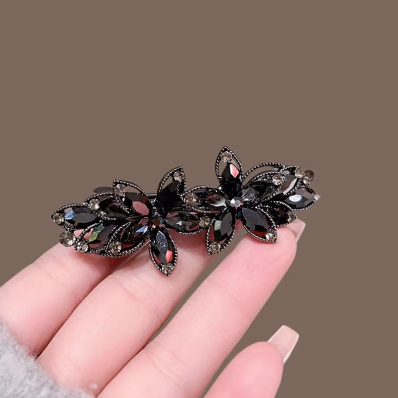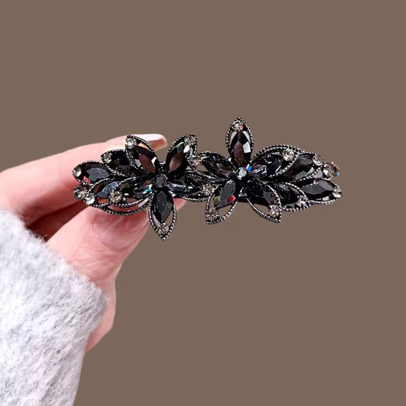 📚 黑曜水晶花朵弹簧夹气质后脑勺顶夹横夹马尾夹优雅半扎发发夹发卡