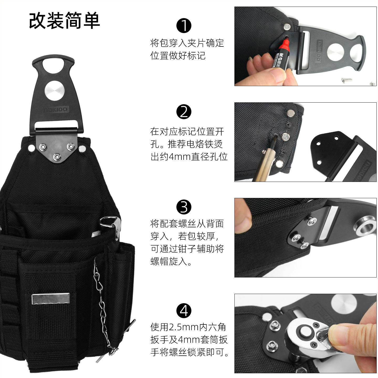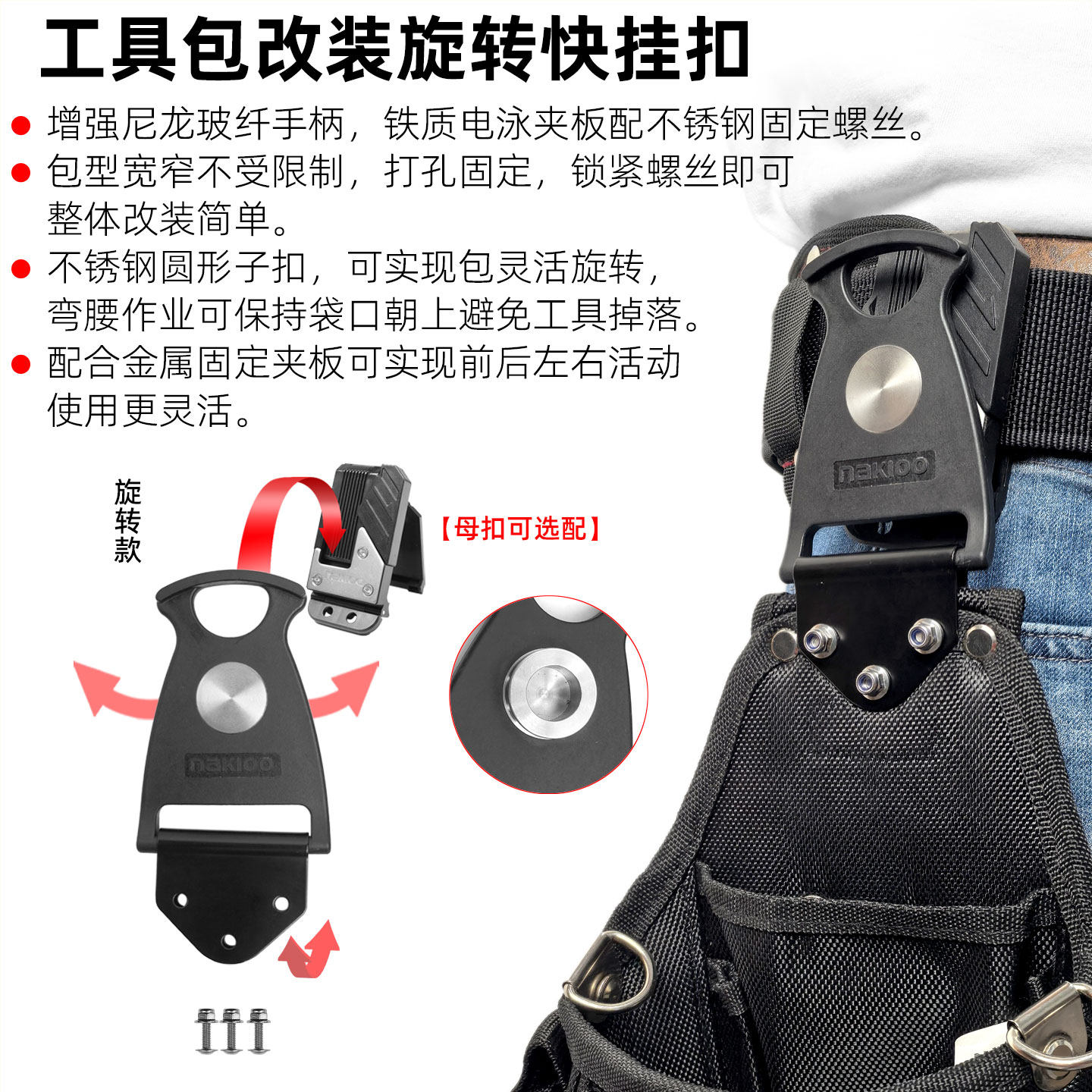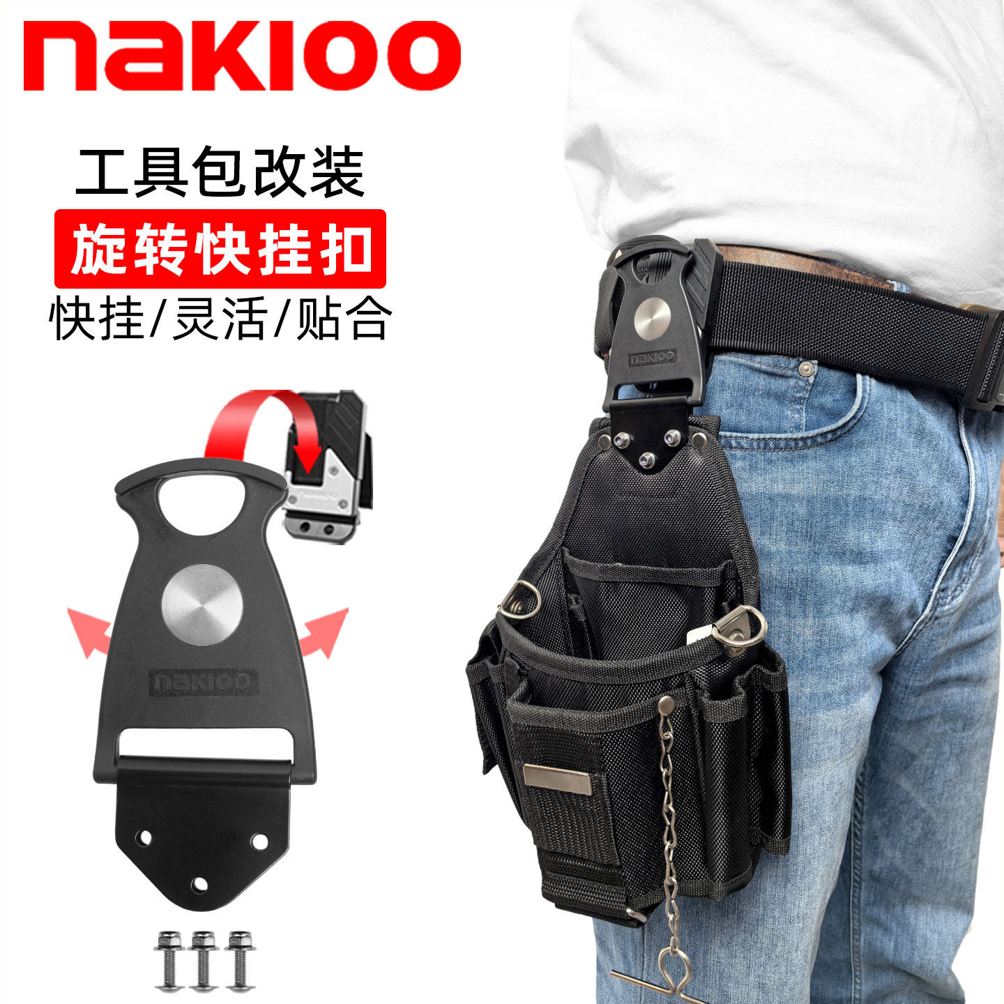 📚 nakioo工具包改装快挂扣电工包升级旋转快挂腰包腰带腰挂包工具袋
