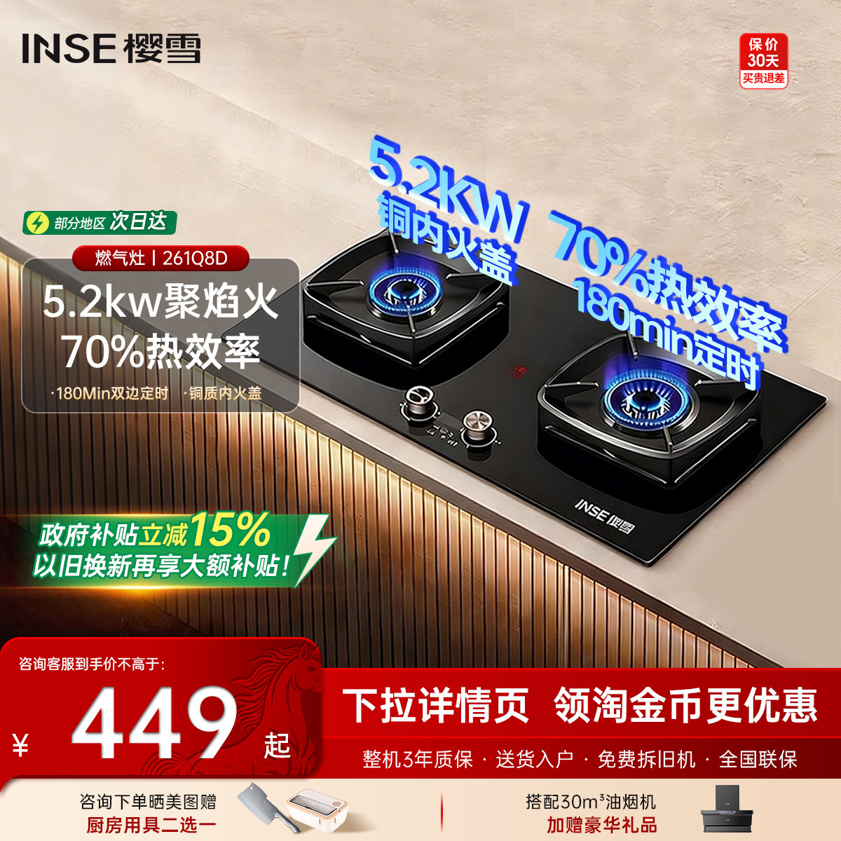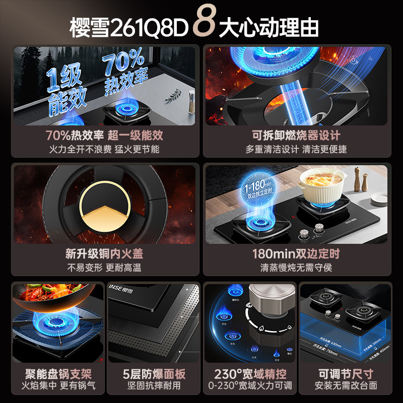 📚 十大名牌樱雪燃气灶煤气灶双灶天然气大火力嵌入式猛火灶具家用