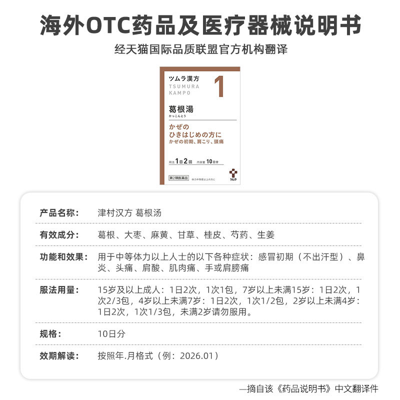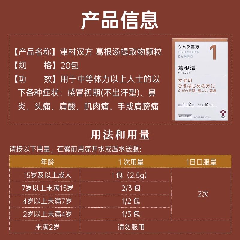 📚 日本津村汉方葛根汤颗粒冲剂中成药感冒初期鼻炎肩酸头痛促进排汗