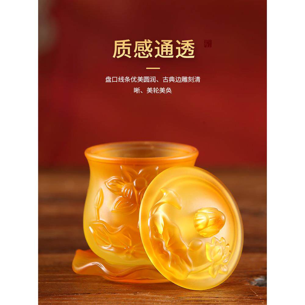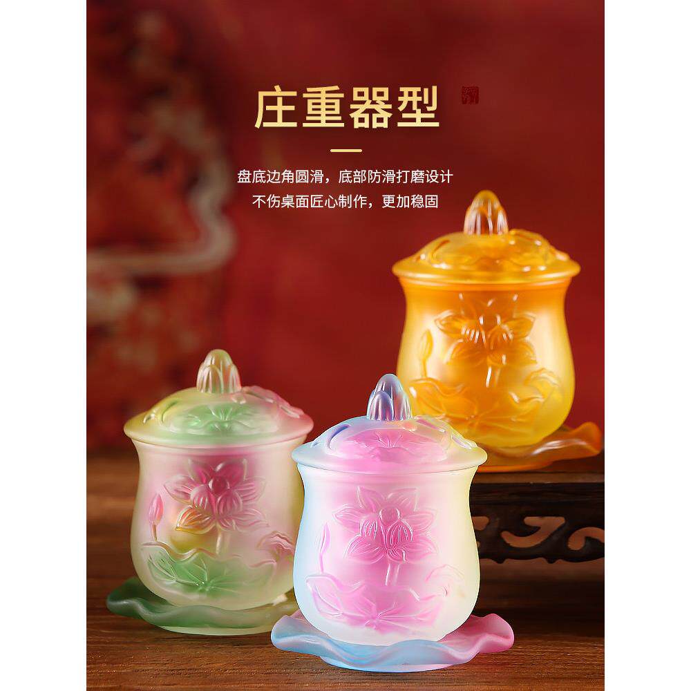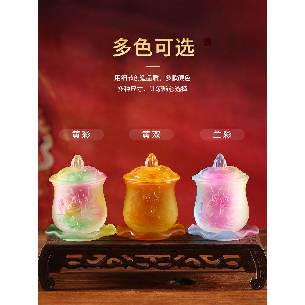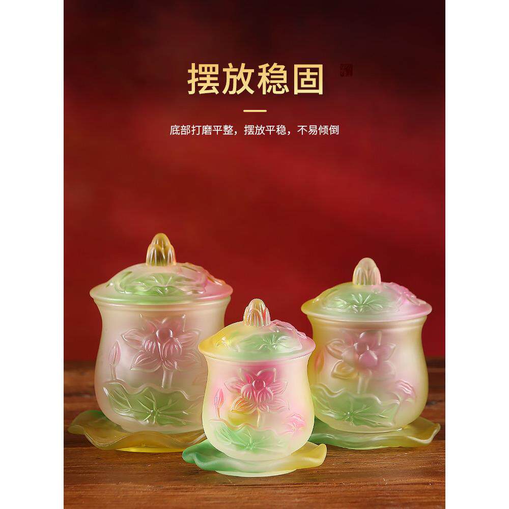 📚 浮雕琉璃莲花供水杯圣水杯家庭菩萨净水杯供养杯佛寺杯佛前摆件
