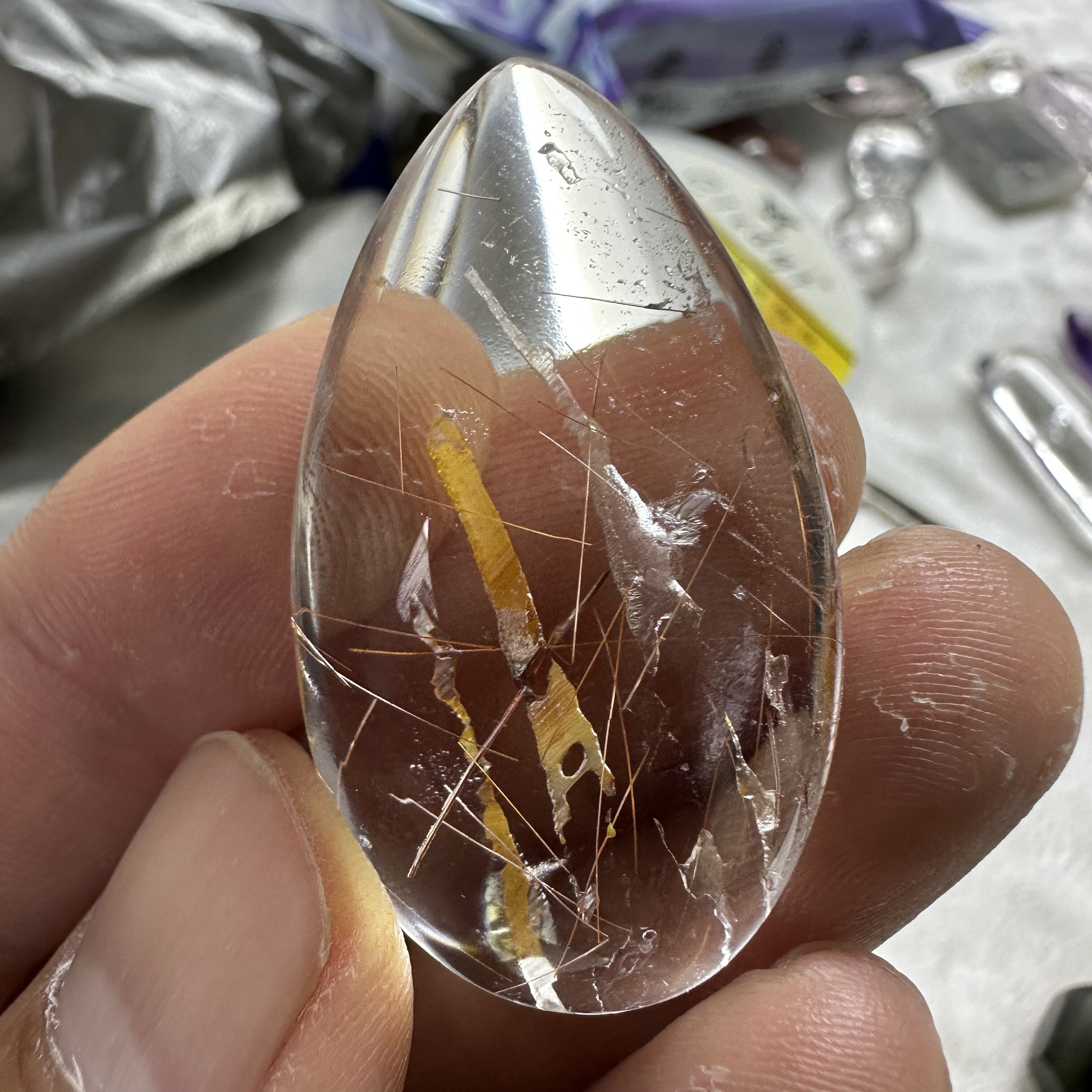 📚 天然白水晶吊坠裸石 黄胶花发晶共生水滴型挂件 意象水晶一物一图