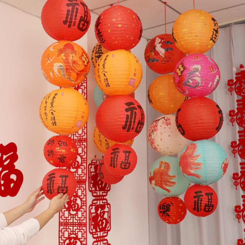 📚 新年春节装饰字纸灯笼直播间氛挂古国风福围布置饰中式风花灯挂件