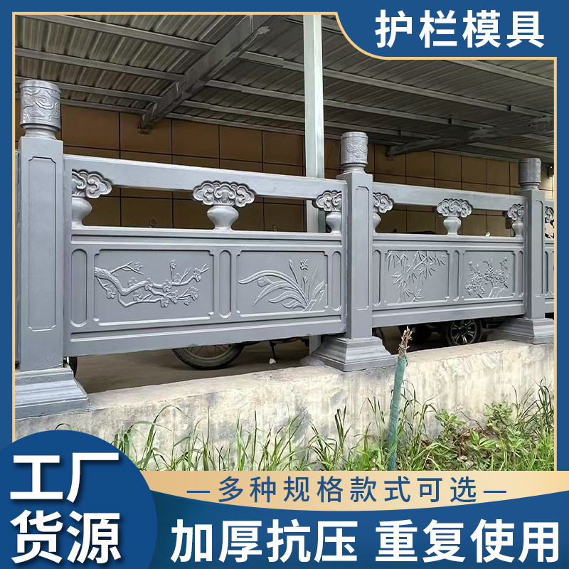 📚 河堤护栏模具园林景区公园混泥土仿木仿石河道荷花款塑料栏杆磨具