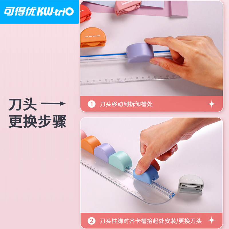 📚 可得优多功能裁纸刀手帐切纸机DIY手工创意定位双向滚动切纸刀直线曲线点状线压折纸扇形虚线波浪线可换刀头