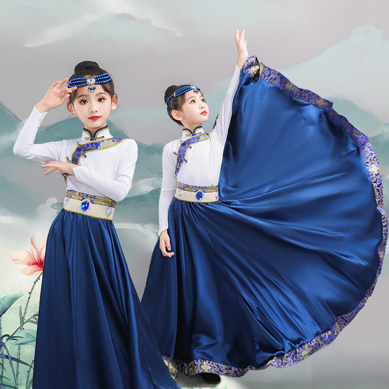 📚 儿童蒙古族舞蹈服装女孩女童藏族衣服少数民族服饰六一演出表演服