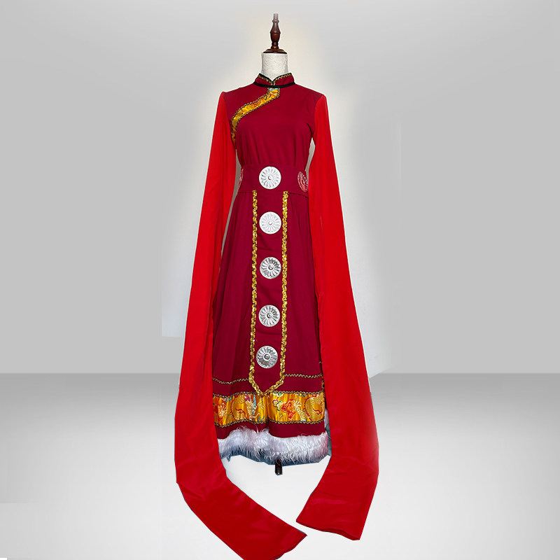 📚 藏族心声舞蹈演出服成人儿童女少数民族风藏式舞蹈裙水袖表演服装