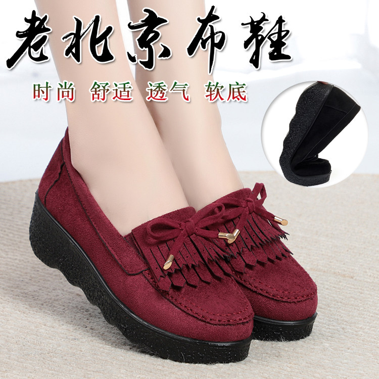 📚 老北京布鞋春夏网红一脚蹬坡跟豆豆鞋女单鞋防滑软底防水跟工作鞋