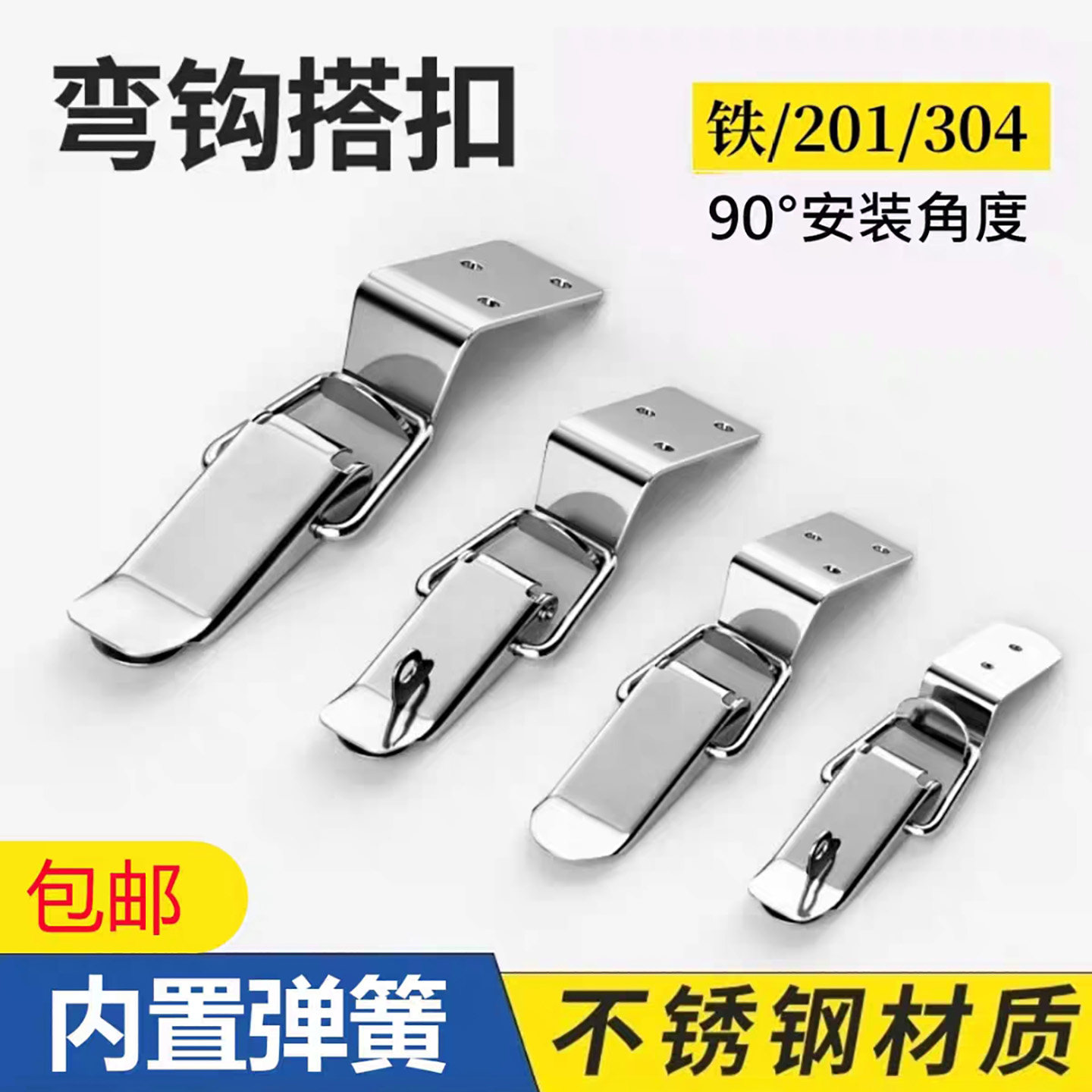 📚 搭扣锁扣 工业设备柜木箱航空箱扣配件 不锈钢304 直角弯钩 90度