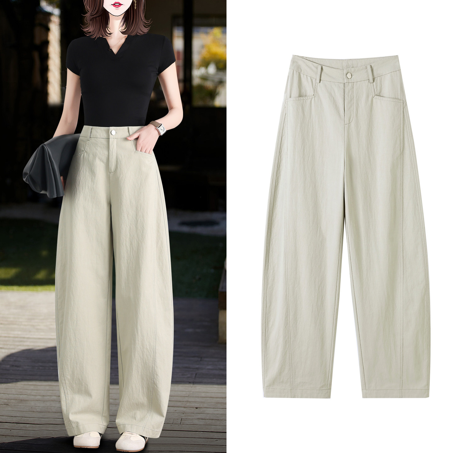📚 高级感天丝棉阔腿香蕉裤女春夏新款垂感休闲弯刀裤薄款窄版镰刀裤