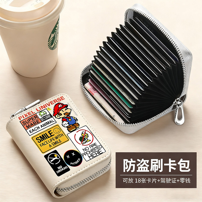 📚 马里奥新款卡包多卡位拉链儿童学生大容量零钱包防盗刷证件收纳包