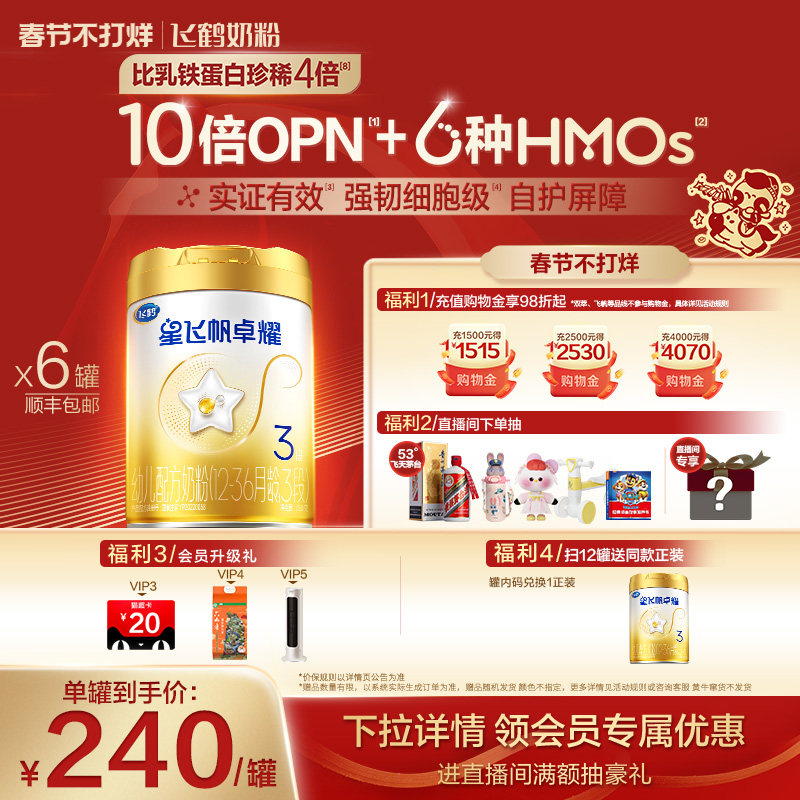 📚 【官方正品】飞鹤星飞帆卓耀A2β酪蛋白奶源3段奶粉750g*6罐5HMOs