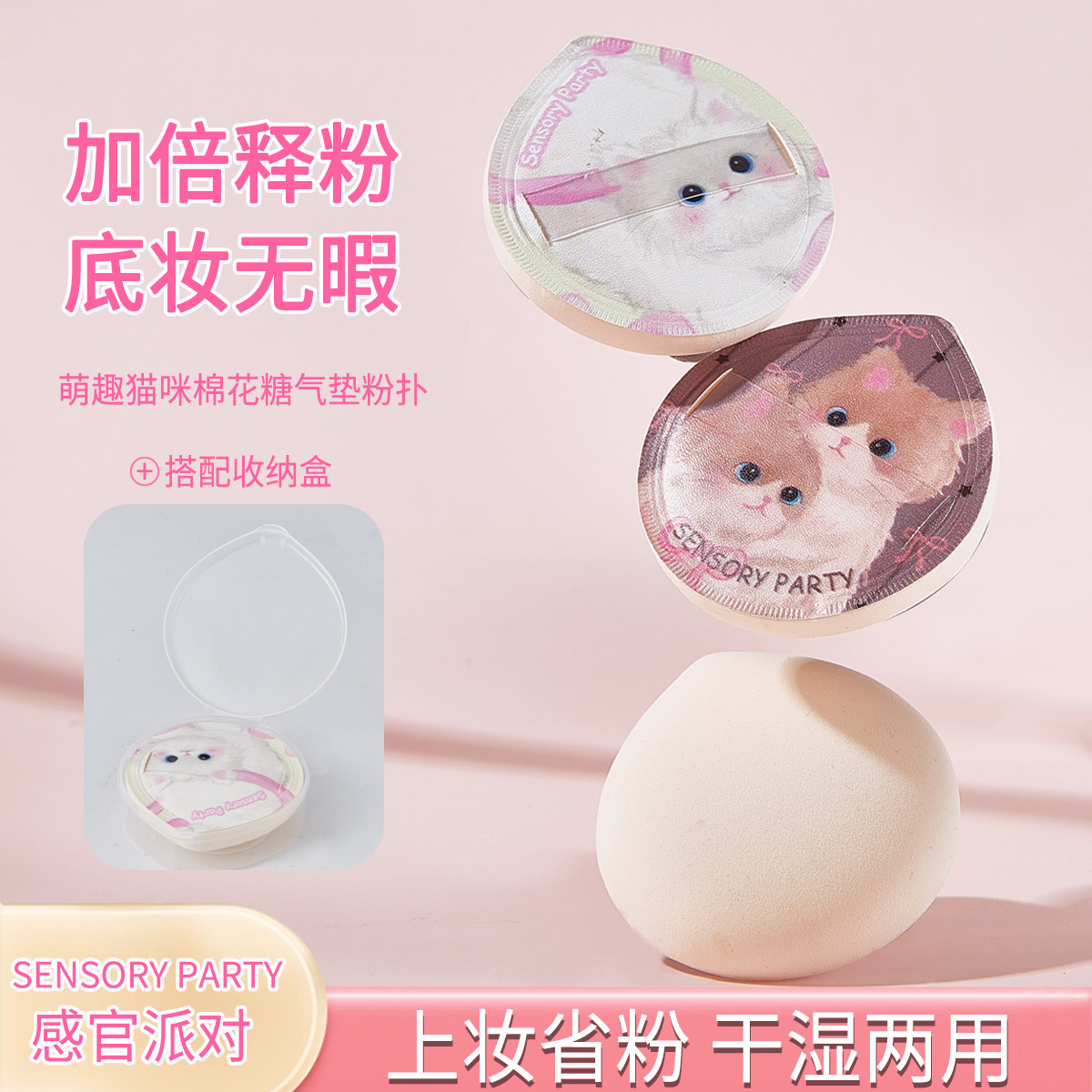 📚 【赠收纳盒】感官派对粉扑气垫超软不吃粉底液干湿两用美妆蛋海绵