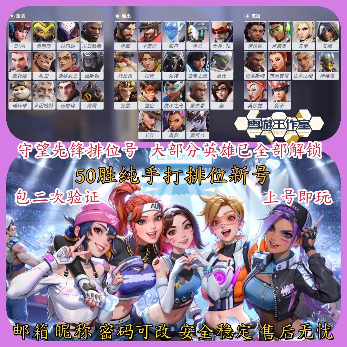 📚 国际服亚服守望先锋ow2账号pc/switch/ps5/xbox/ns成品号手工注册