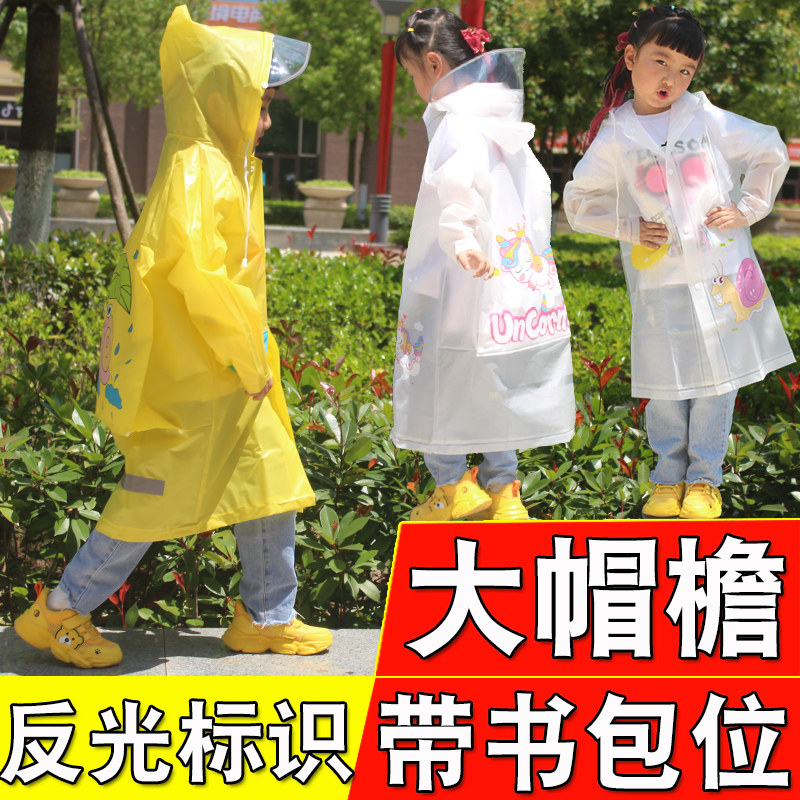 📚 儿童雨衣幼儿园大童小学生长款防暴雨带书包位反光大帽檐连体雨披