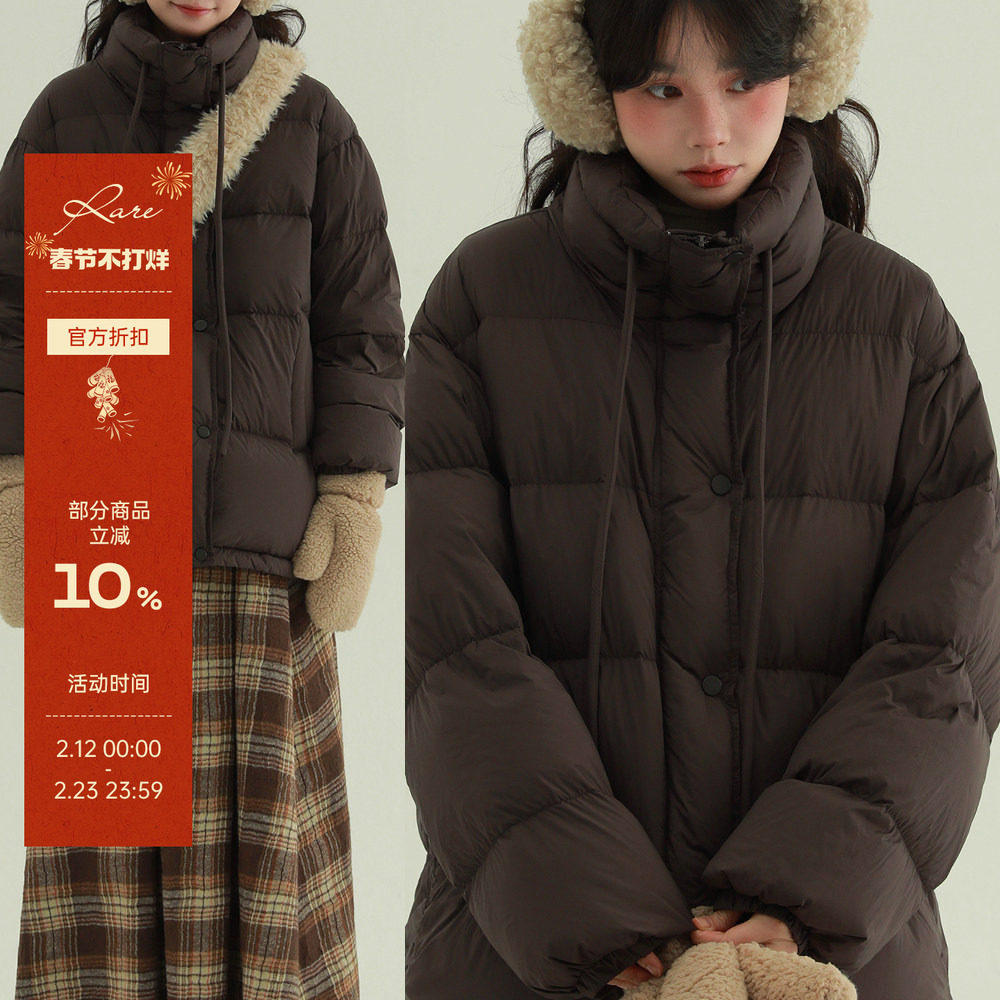 📚 稀有RARE 立领系带中长款羽绒服秋冬加厚保暖小个子白鸭绒外套女