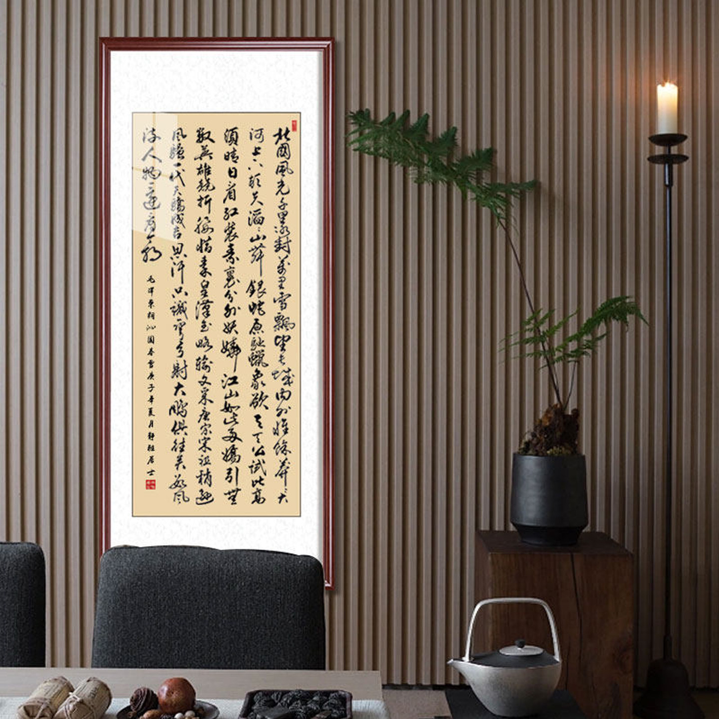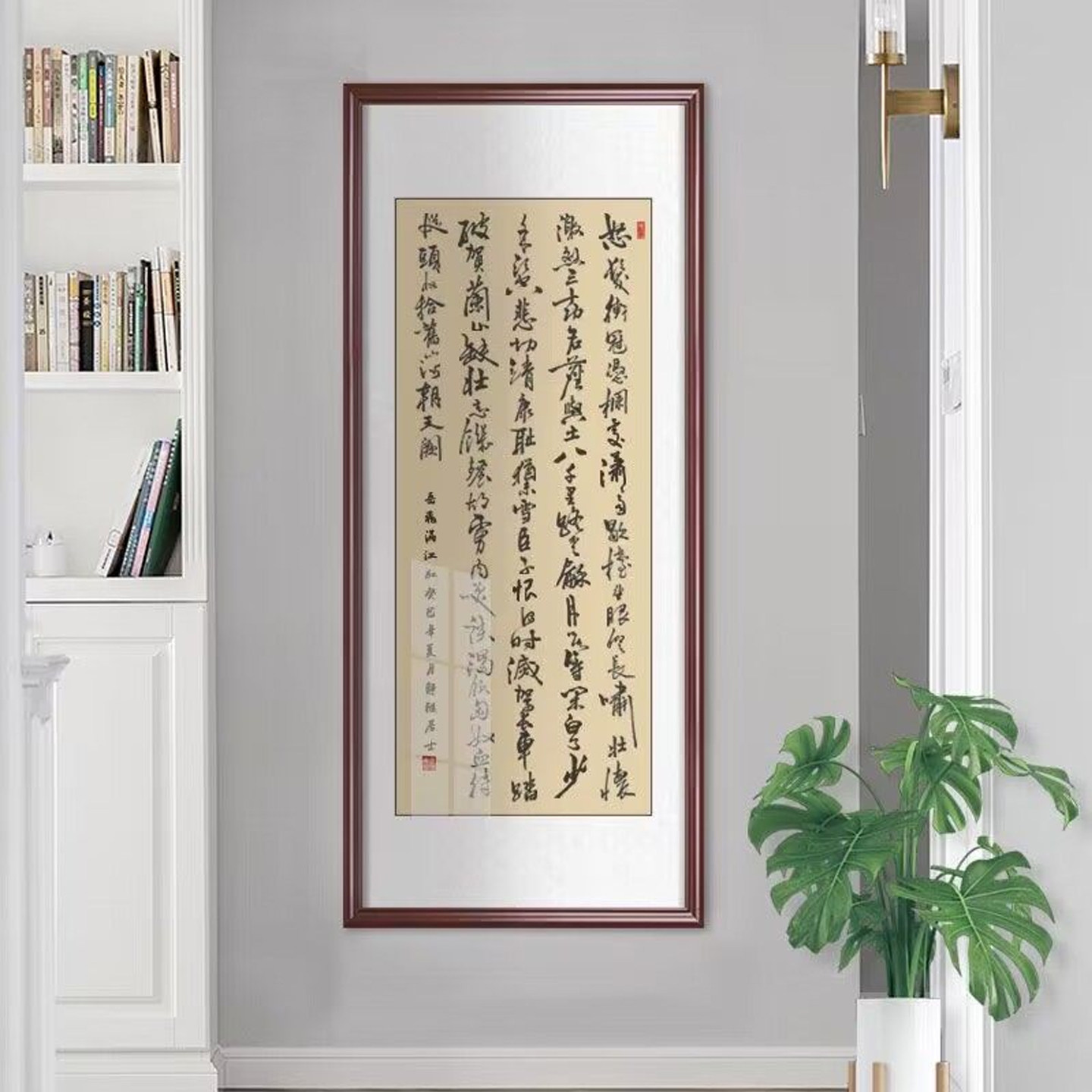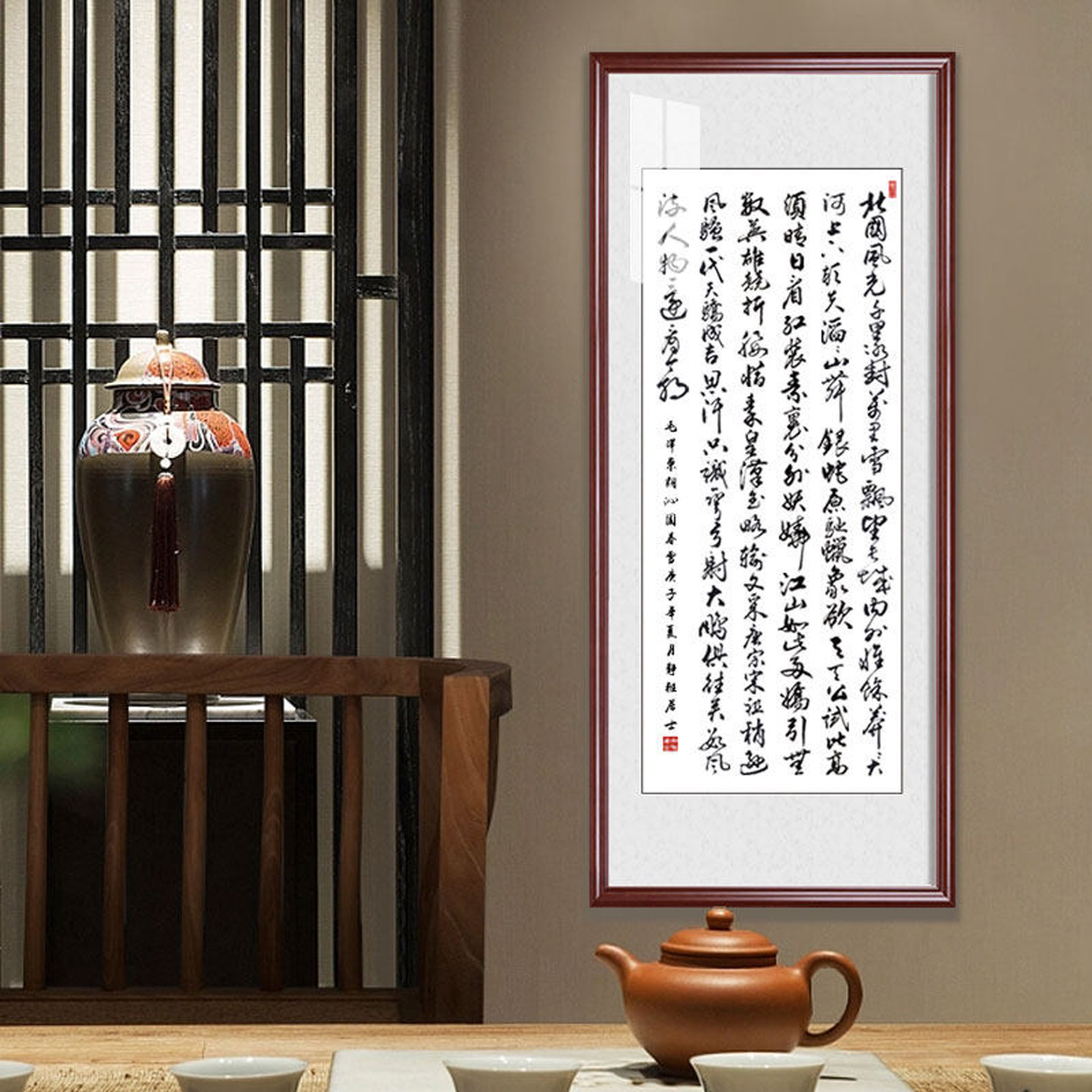 📚 沁园春雪书法挂画长篇陋室铭手写办公室字画裱框满江红竖版玄关画