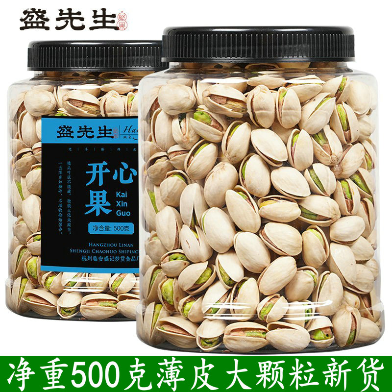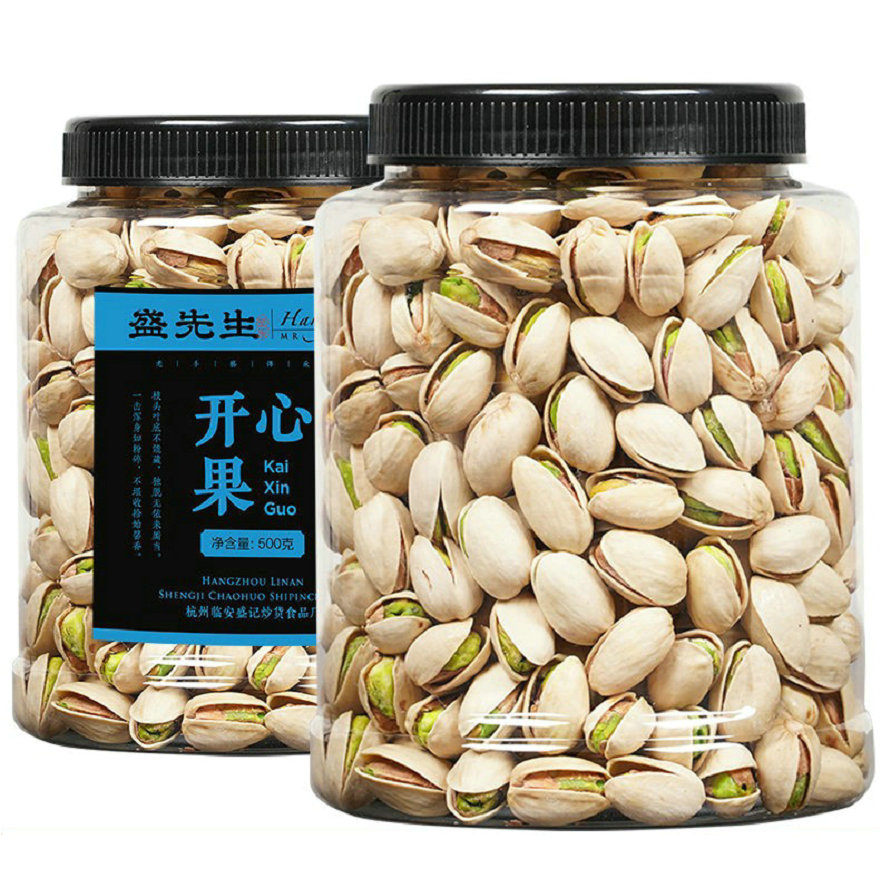 📚 大颗开心果500克罐装小包装原色无漂白原味坚果干果零食炒货年货