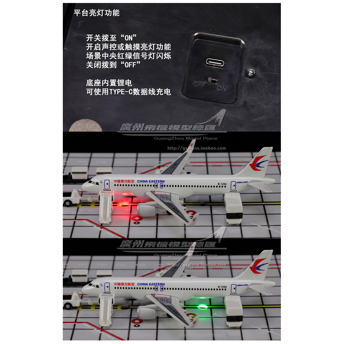 📚 中国东方航空空客A320 机场场景模型 塑料地勤车停机坪亮灯 1:400