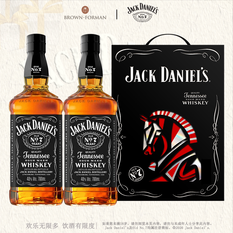 📚 杰克丹尼黑标500ml*2马年礼盒装美国田纳西州威士忌进口洋酒基酒