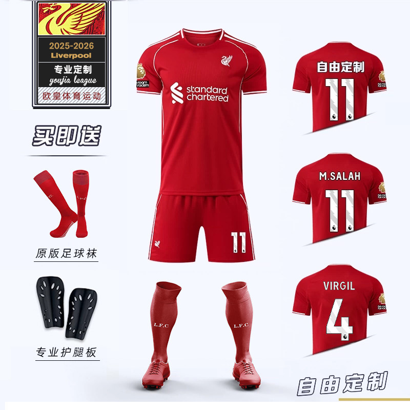 📚 2526利物浦球衣萨拉赫阿诺德足球服套装男儿童客场比赛训练服定制
