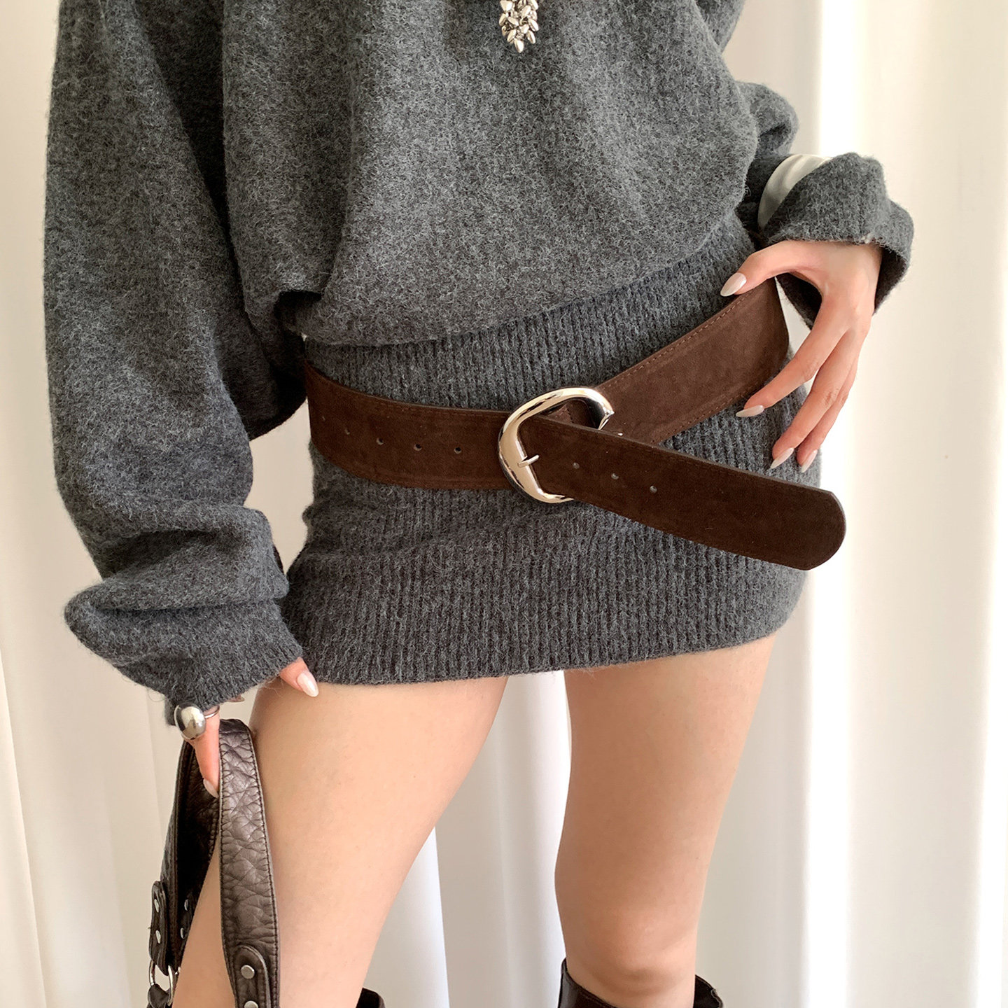 📚 复古美拉德毛衣棕色宽腰带女高级感配裙子牛仔裤腰封配饰百搭皮带