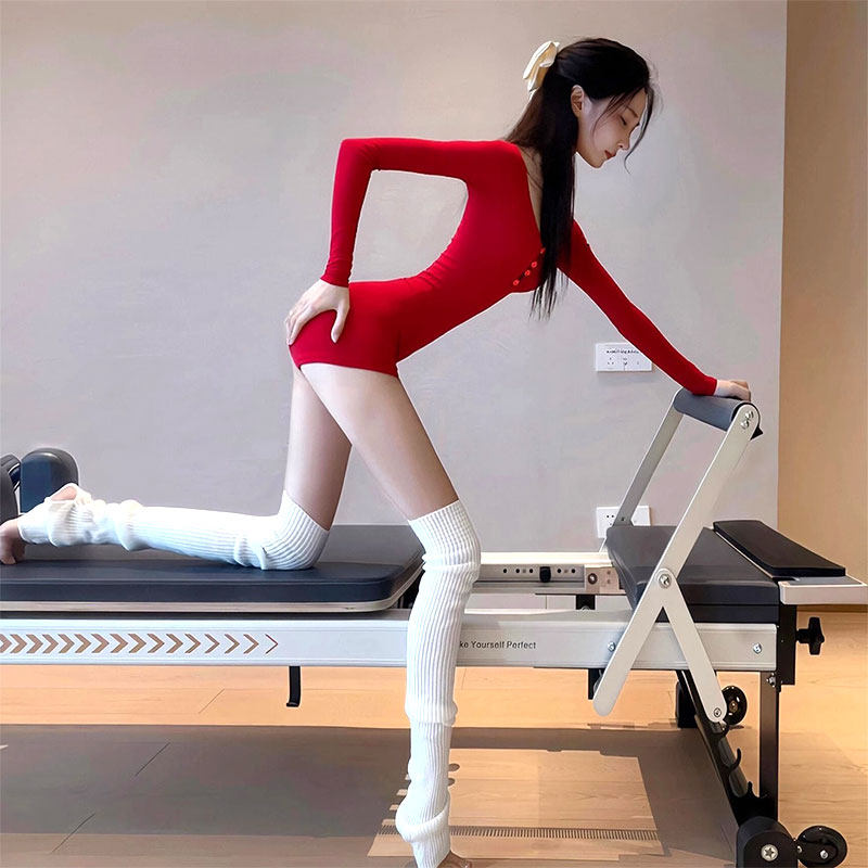 📚 红色普拉提连体衣跑步健身圣诞节穿搭绝美运动长袖高级感瑜伽服冬