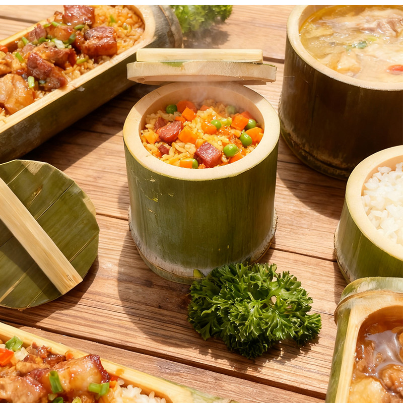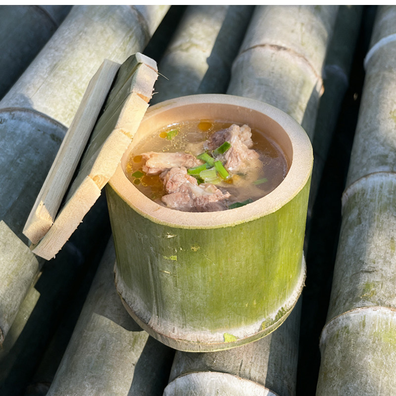 📚 手工制作新鲜天然竹筒饭竹蒸筒带盖户外野外专用烧烤卧式竹桶火烤