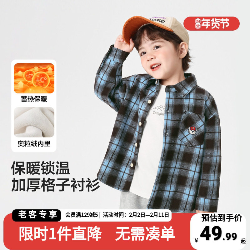 📚 男童加绒格子衬衫秋冬款童装冬季新款儿童宝宝衬衣冬装小童上衣潮
