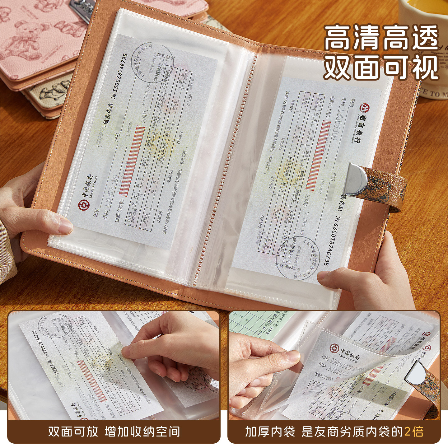 📚 存单收纳本票据收纳册皮质磁扣多功能存单夹纪念机票收藏册票据夹存款单收纳家庭现金理财存折定期银行存单夹