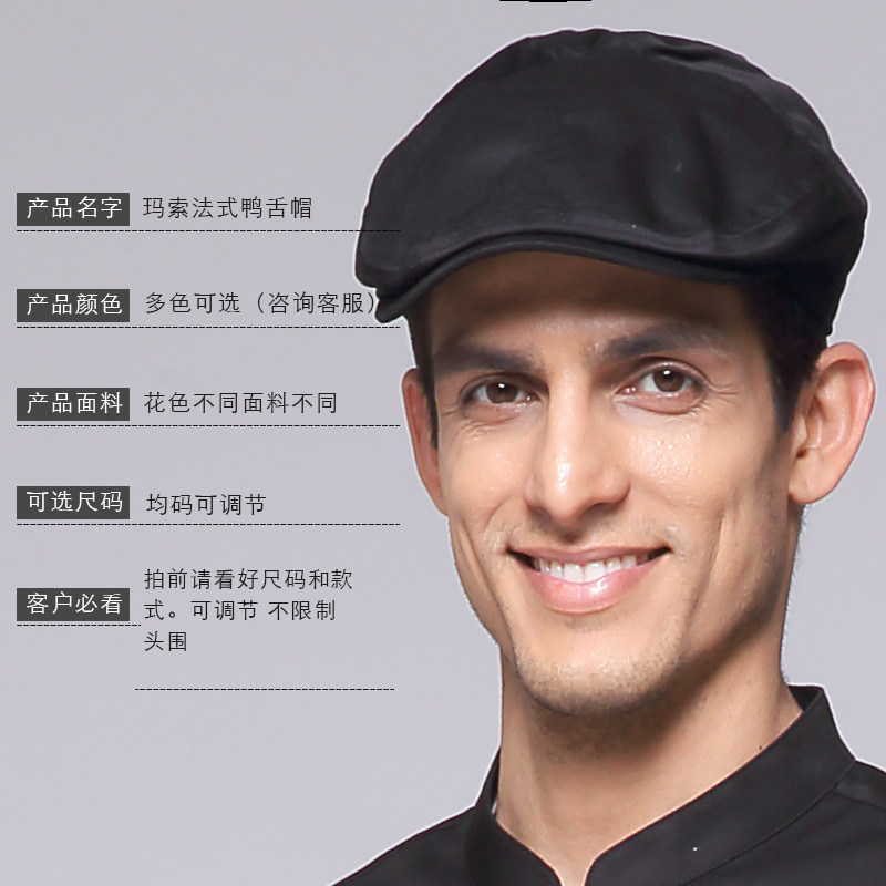 📚 Masso法式厨师后场裱花师工作帽鸭舌帽前场前厅服务生帽子可定制