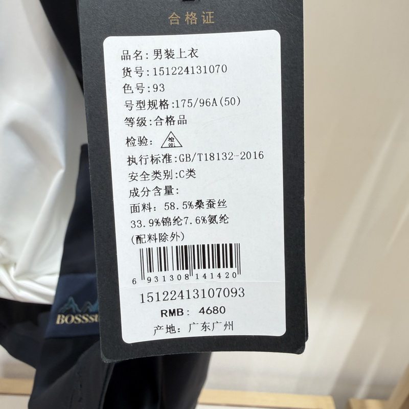 📚 博斯绅威BOSSsunwen春夏款休闲翻领夹克外套151224131070专柜4680