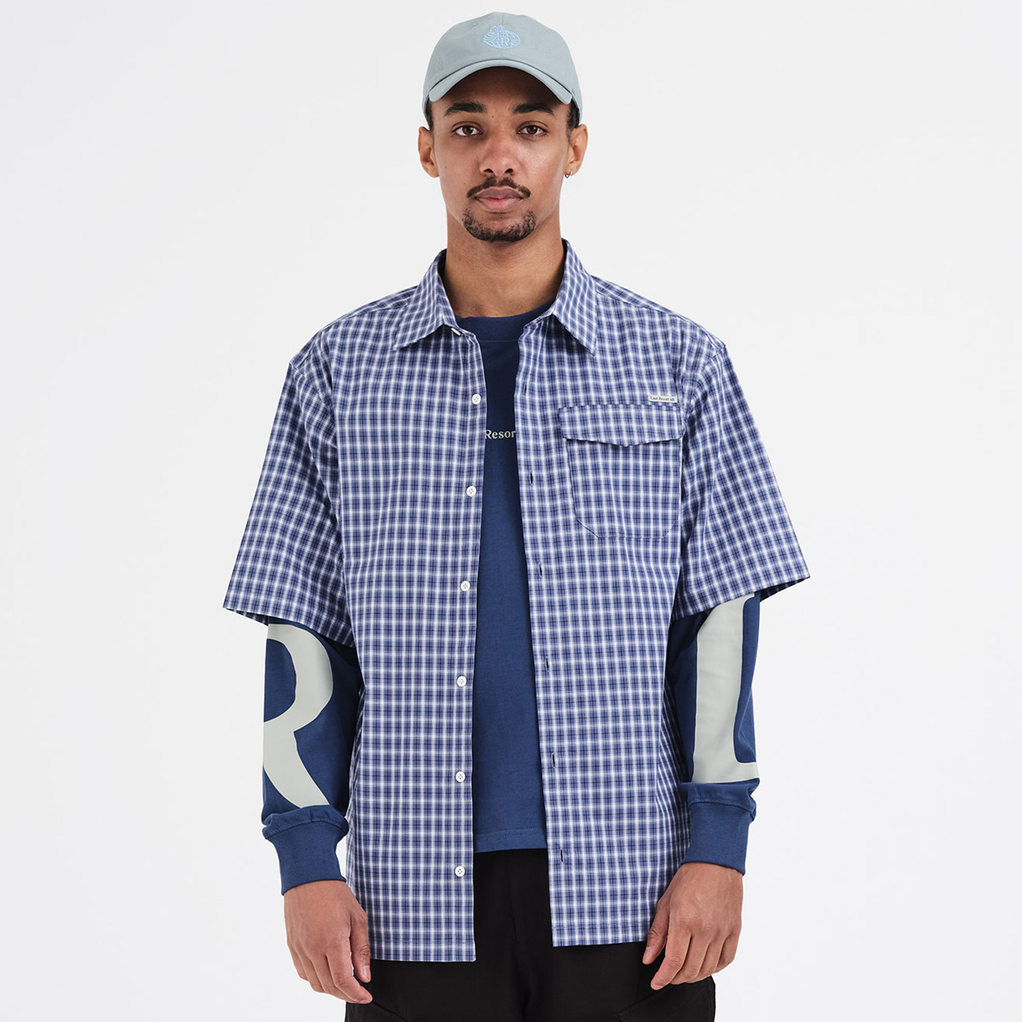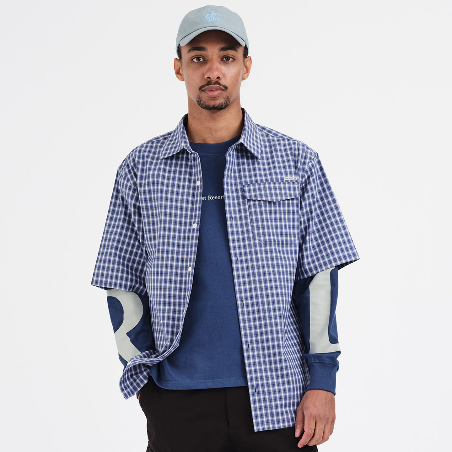📚 Last Resort AB BASE SS Shirt春秋男士休闲纯棉短袖衬衫格子衬衣