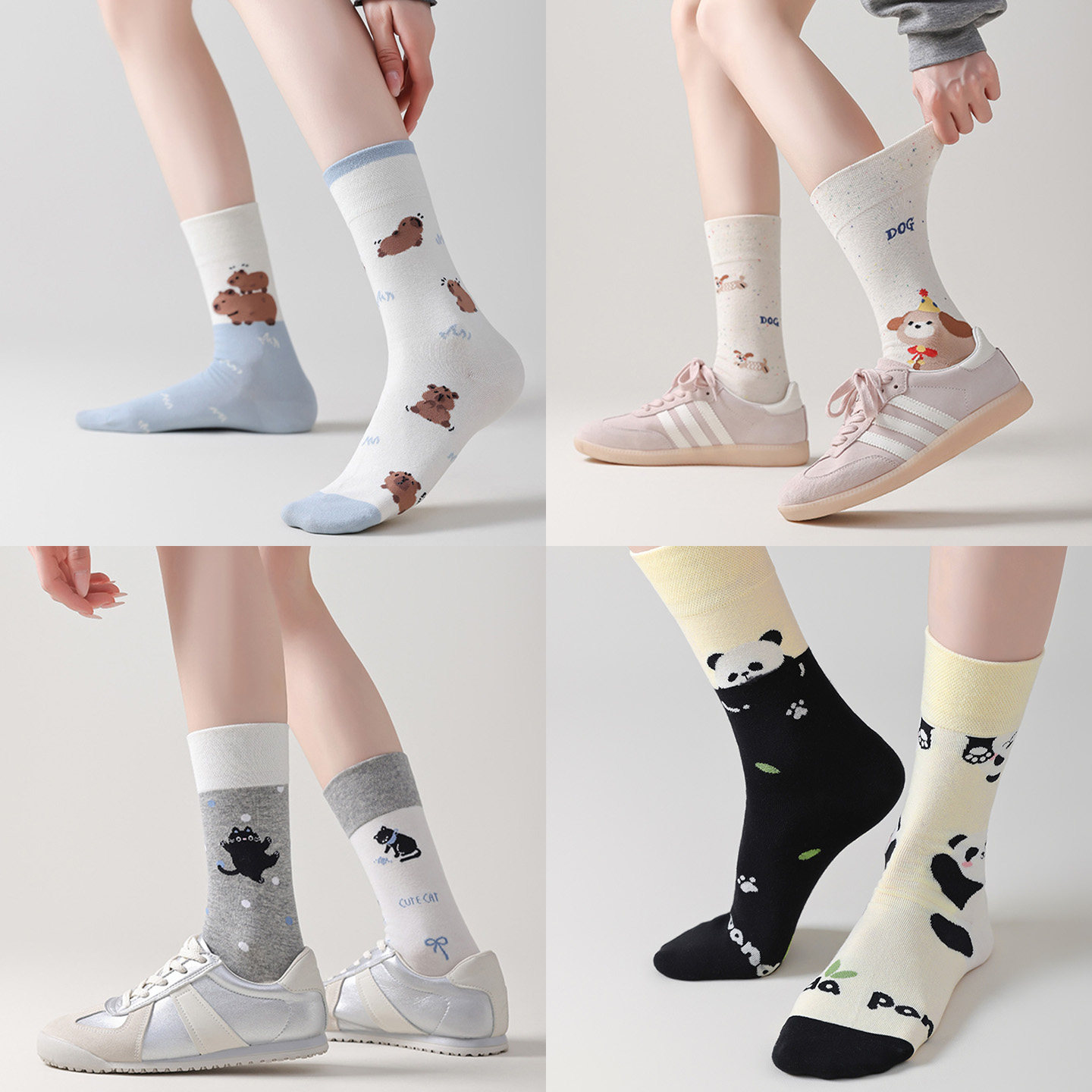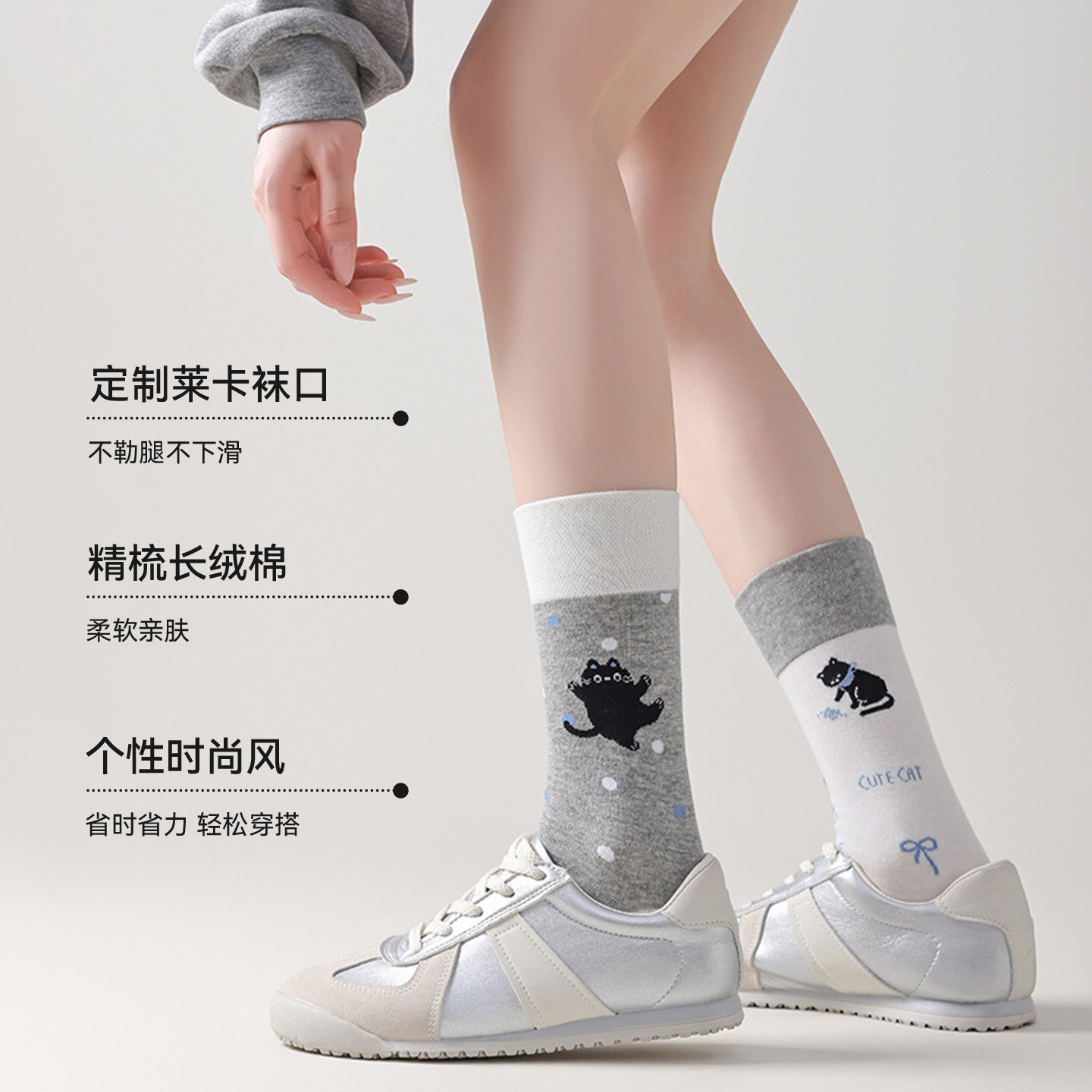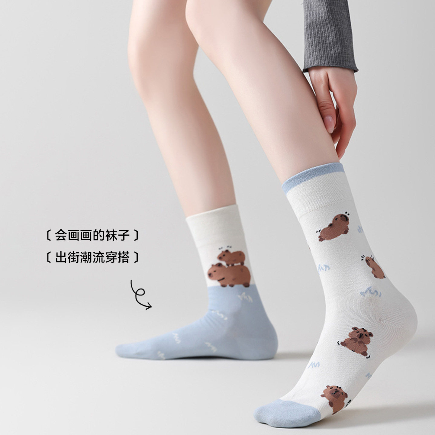 📚 AB不对称袜子女款中筒袜冬季2026新款爆款原创潮袜可爱卡通花袜子