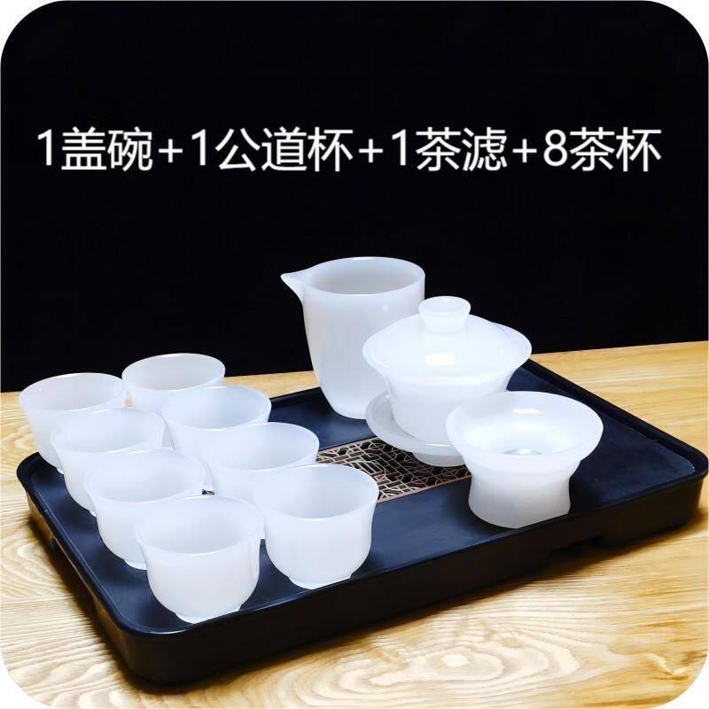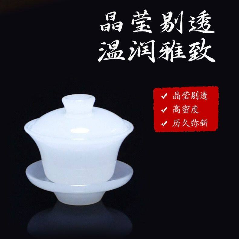 📚 冰种琉璃茶具玉茶杯茶壶全套一整套套装玉石中国风三件套新居乔迁