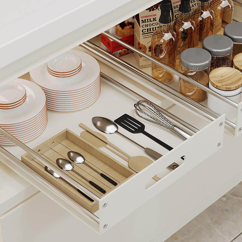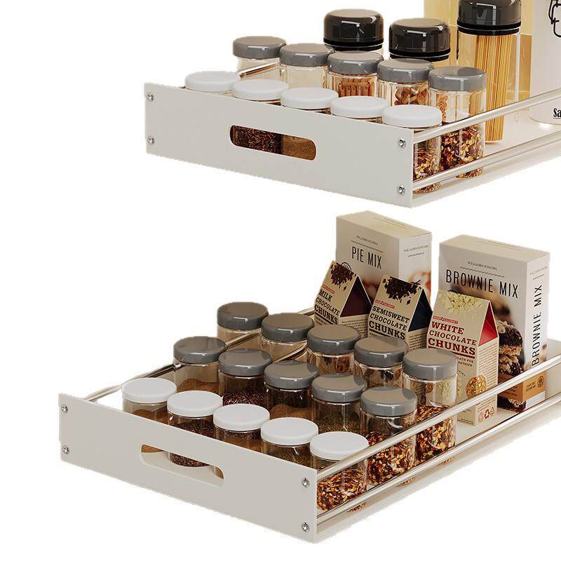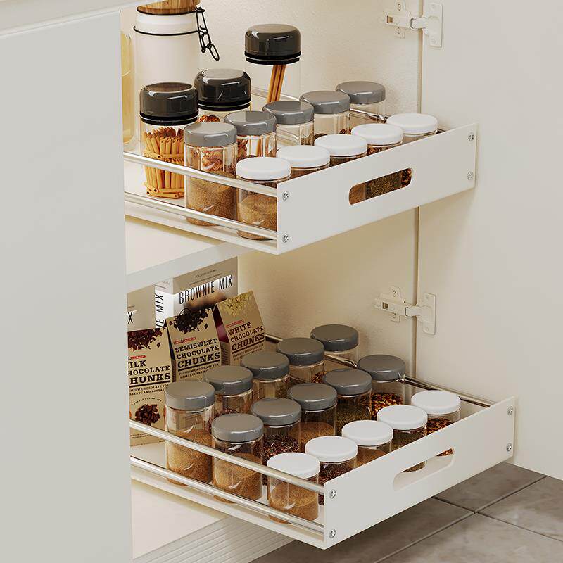 📚 抽厨房拉篮抽屉式高单层托盘橱柜不锈钢置物调味白色拉加碗碟收纳
