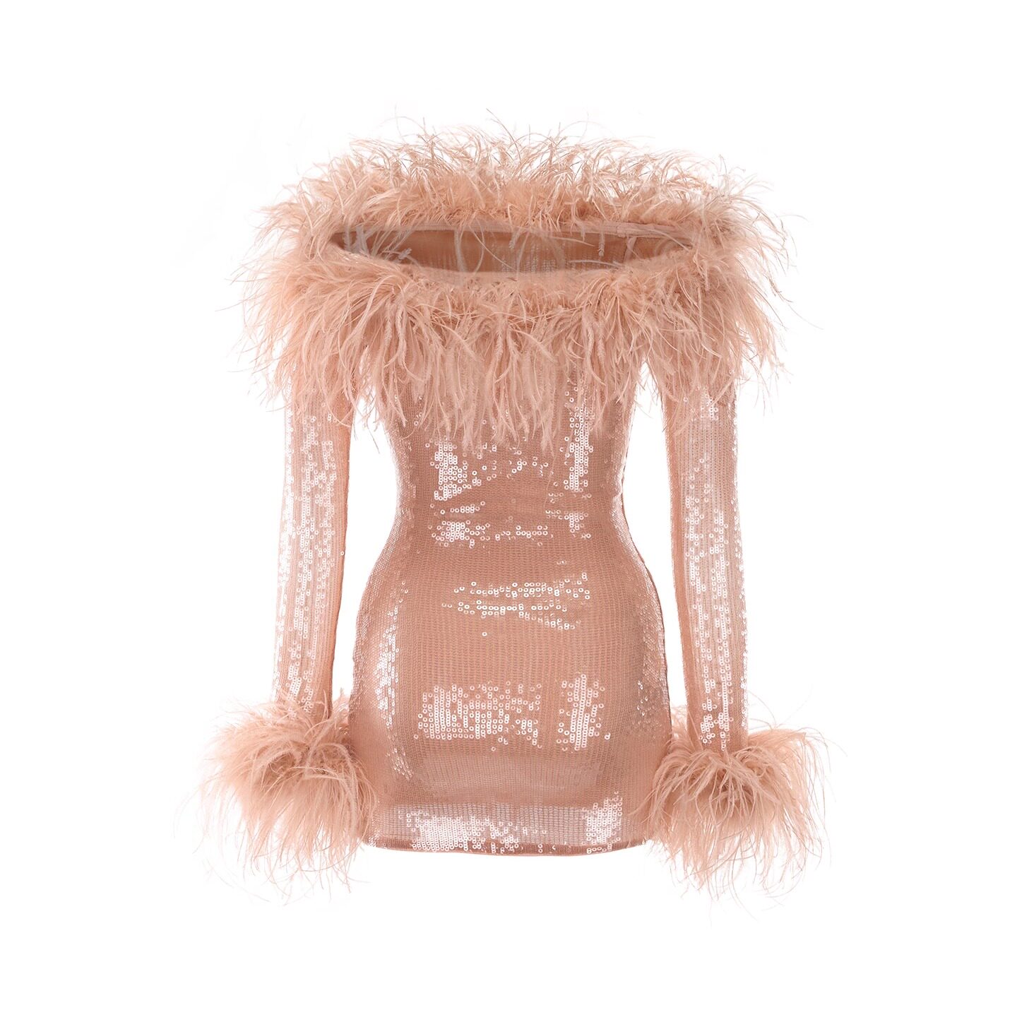 📚 Nana Jacqueline一字肩毛毛亮片短款连衣裙新款约会party轻礼服