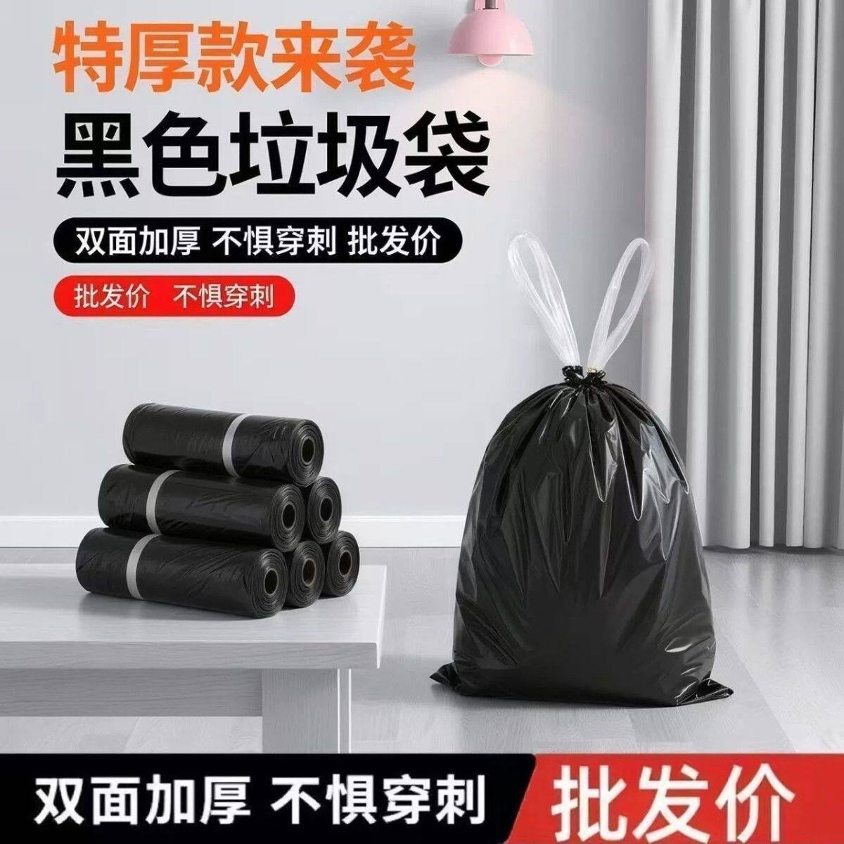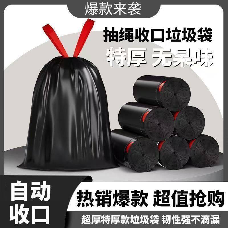📚 抽绳式加厚垃圾袋家用手提式客厅特厚点断式塑料袋学生宿舍垃圾袋