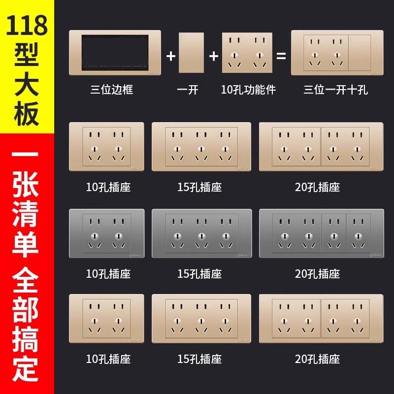 📚 国际电工118型双控开关面板插座家用灰色多控1开单二三四五六开灯