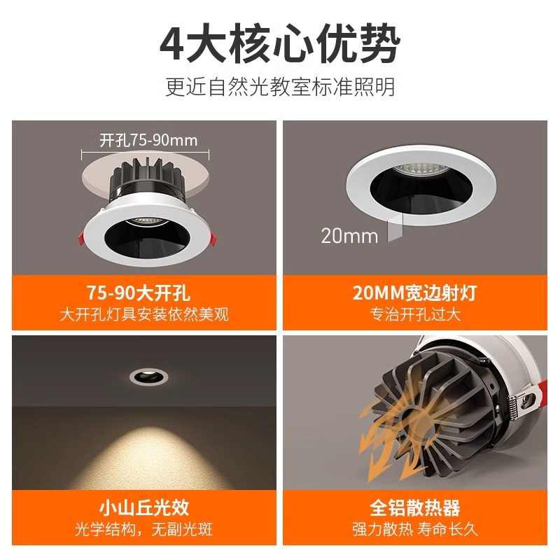📚 宽边防眩目射灯80开孔led天花灯嵌入式大尺寸开孔9cm8.5公分8厘米