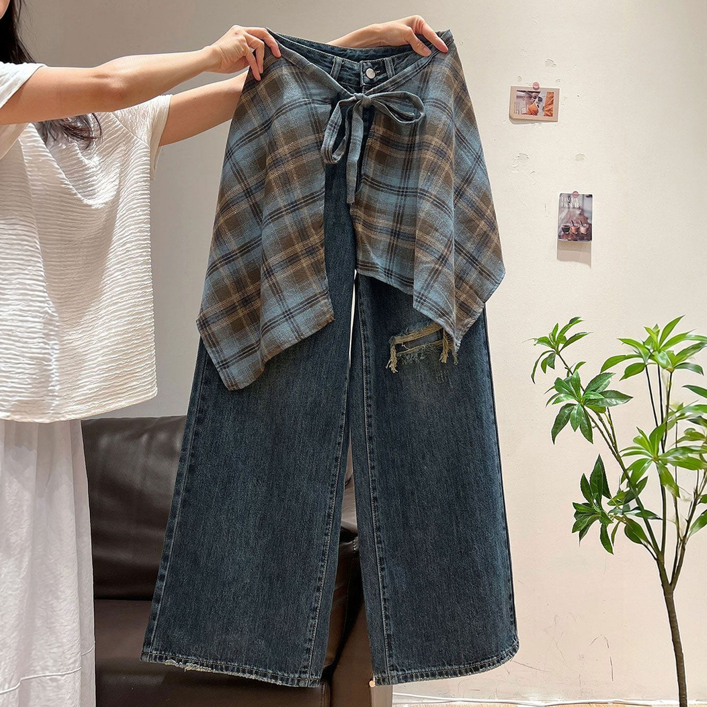 📚 特大码女装胖mm复古高级感阔腿牛仔裤女高腰直筒垂感慵懒风长裤子