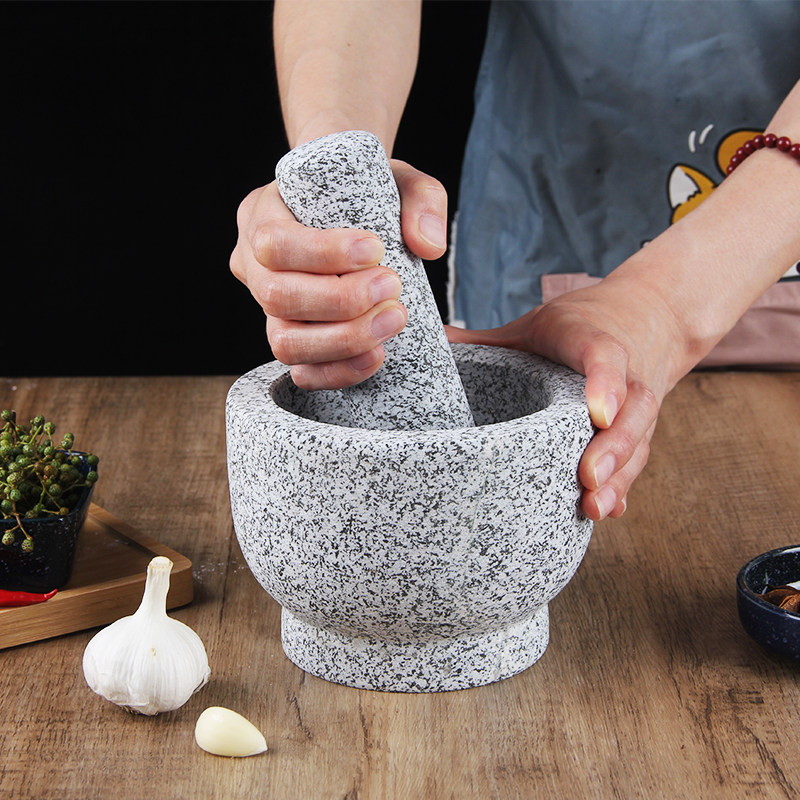 📚 石臼家用捣蒜器蒜捣药罐研磨器碾蒜器蒜臼子花岗岩芝麻白蒜泥器杵